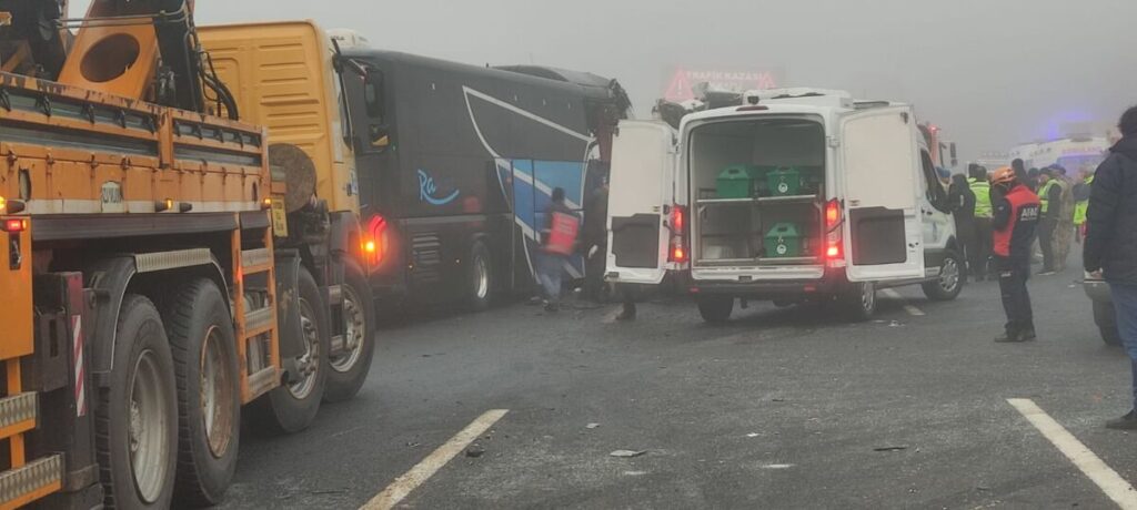 Kuzey Marmara Otoyolu’nda 3 otobüs ile 1 TIR’ın da olduğu 7 aracın karıştığı kazada 10 kişi öldü, 63 kişi de yaralandı. Kazaya ilişkin soruşturma kapsamında görevlendirilen 3 Cumhuriyet savcısı ile jandarma ekipleri tarafından olay yerine ilişkin ilk rapor hazırlandı. Raporda, 7 aracın birbirine girdiği kazanın nasıl meydana geldiği anlatıldı.