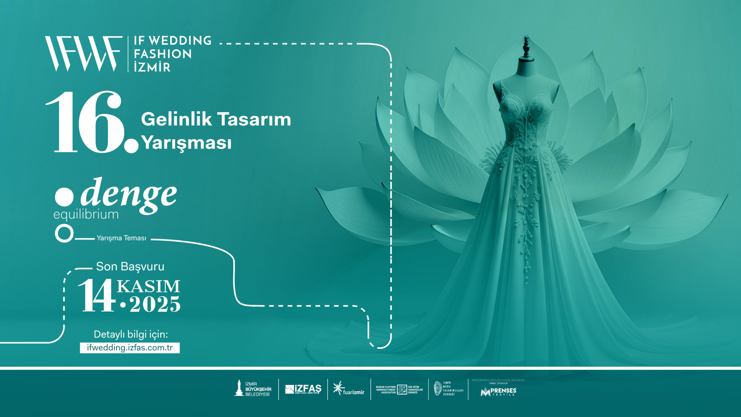 Avrupa’nın en büyük moda fuarlarından IF Wedding Fashion İzmir-Gelinlik, Damatlık ve Abiye Giyim Fuarı kapsamında düzenlenen 16. Gelinlik Tasarım Yarışması için başvurular başladı. Bu yıl “Denge” temasıyla gerçekleştirilecek yarışmaya, geçen yıl 97 tasarımcı, 243 tasarımla katılmıştı. Yarışmaya başvurular, 14 Kasım’a kadar devam edecek.