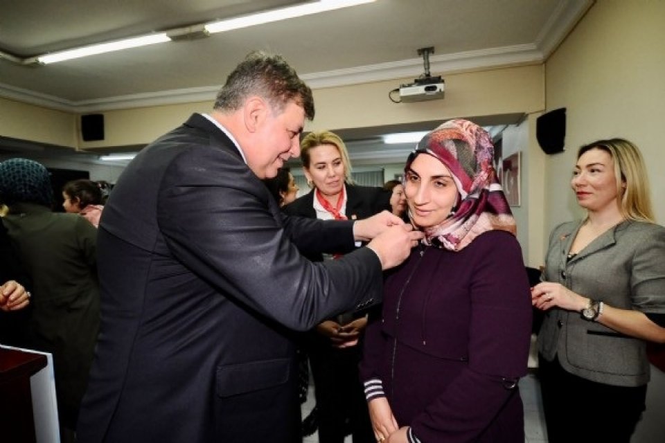 CHP Karşıyaka İlçe Başkanı Rafet Yacan ve İlçe Kadın Kolları Başkanı Fatma Cengiz’in de katıldığı törende, yeni üyelerin parti rozetleri Karşıyaka Belediye Başkanı Dr. Cemil Tugay tarafından takıldı.