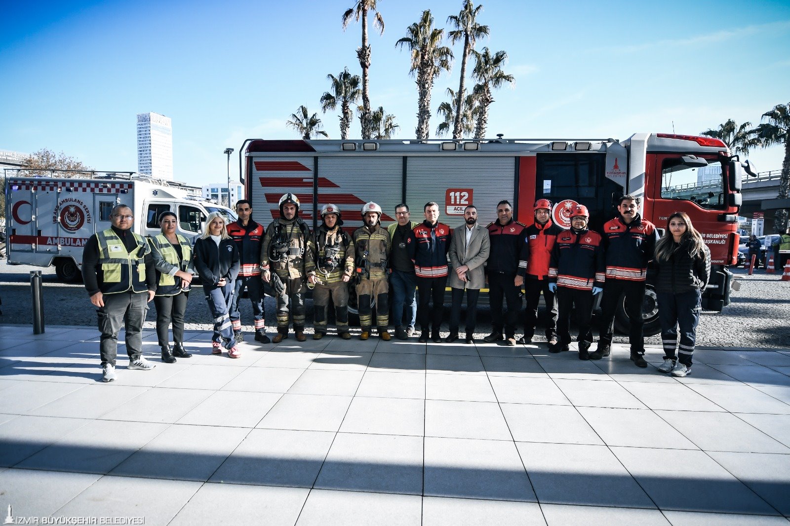 İzmir Büyükşehir Belediyesi İtfaiye Dairesi Başkanlığı ekipleri, yüksek katlı binalarda olası yangın ve acil durumlara hazırlık amacıyla Bayraklı gökdelenler bölgesinde bulunan 47 katlı bir binada kapsamlı bir yangın ve arama kurtarma tatbikatı gerçekleştirdi.