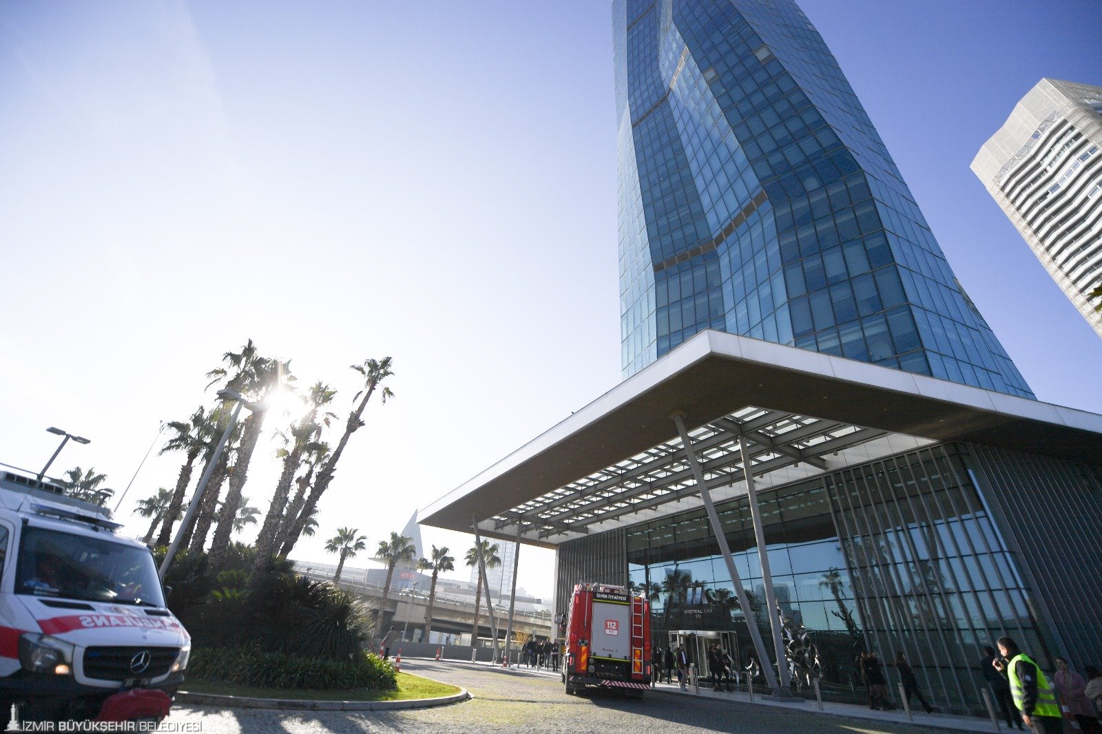 İzmir Büyükşehir Belediyesi İtfaiye ekipleri, Bayraklı’daki 47 katlı binada olası