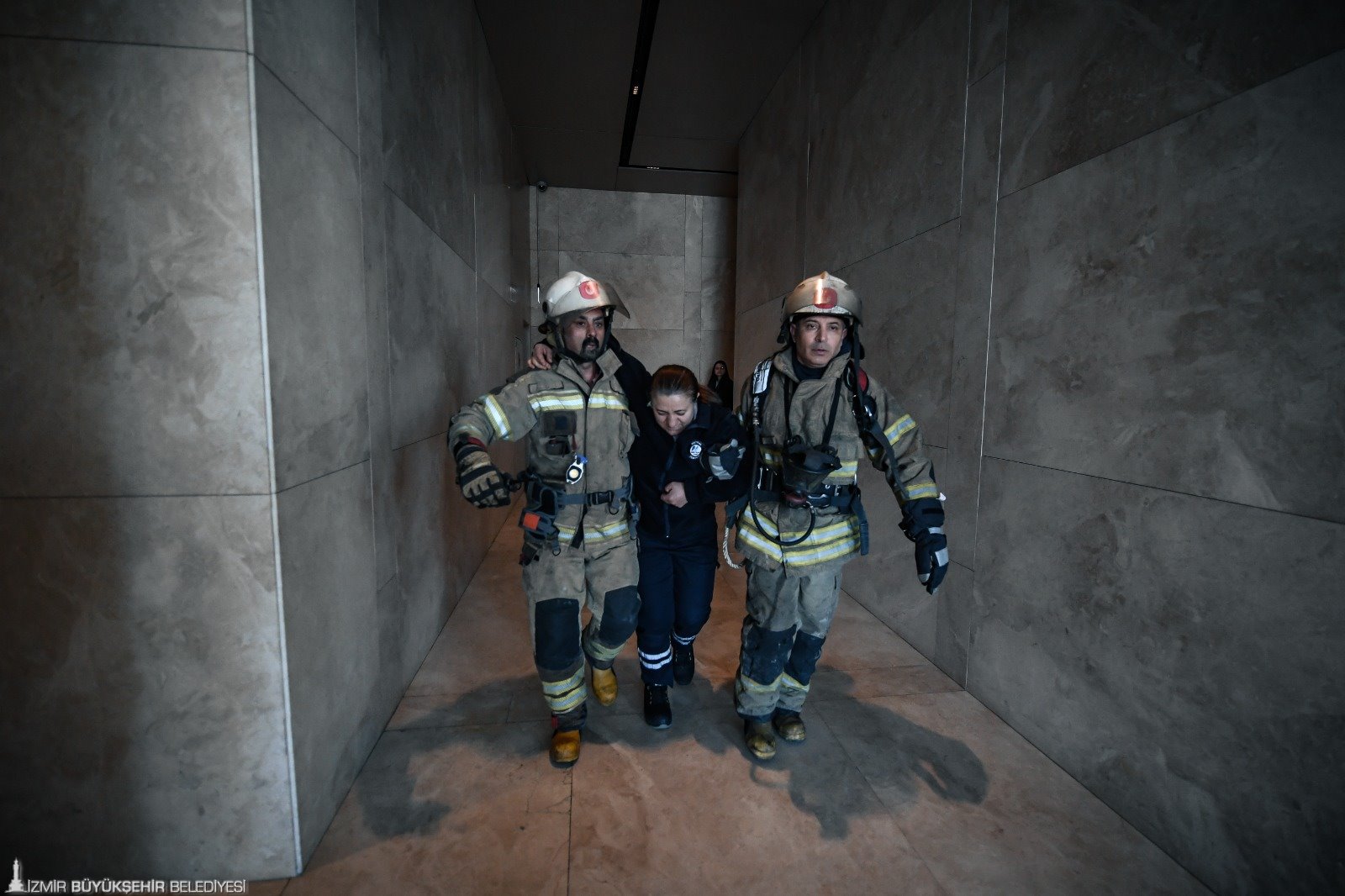 İzmir Büyükşehir Belediyesi İtfaiye ekipleri, Bayraklı’daki 47 katlı binada olası yangın ve acil durumlara karşı gerçeği aratmayan bir tatbikat gerçekleştirdi.