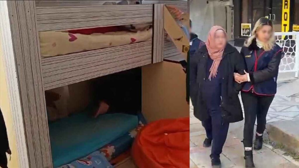 Denizli’de hakkında FETÖ/PDY’ye üyesi olmak suçundan 6 yıl 3 ay kesinleşmiş hapis cezası bulunan meslekten ihraç öğretmen Gülçin T. (43) ranzanın içine yaptırdığı gizli bölmede Jandarma Suç Araştırma Timi (JASAT) tarafından yakalandı. Gözaltına alınan Gülçin T., sevk edildiği adliyede tutuklandı.