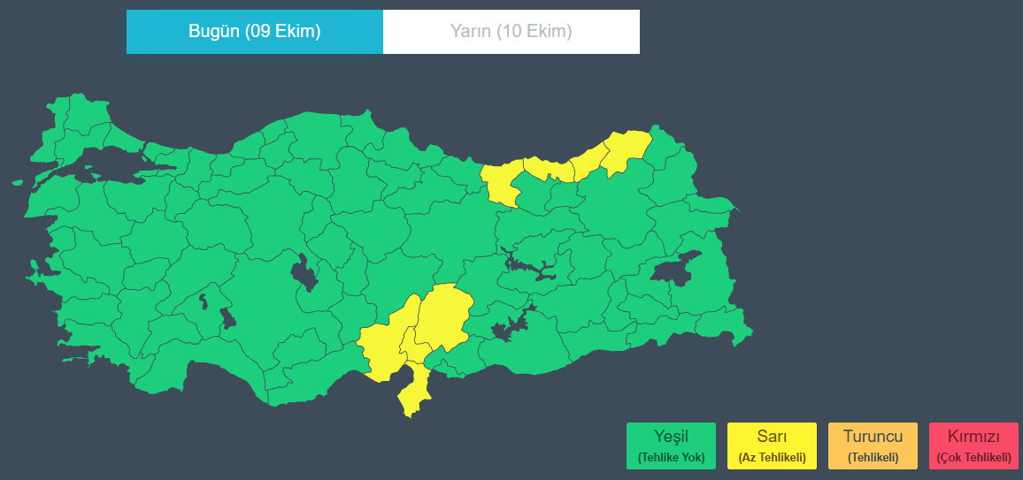 Meteoroloji genel müdürlüğü, 8 kent için sarı kod uyarısı yaptı. Uyarı verilen kentler şunlar: