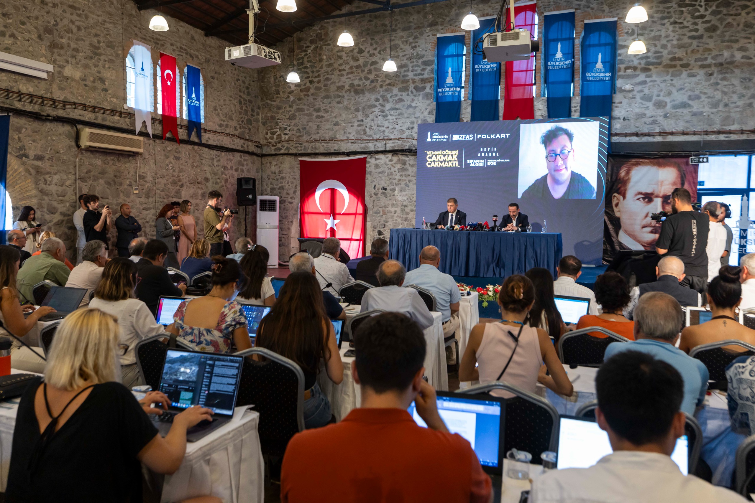 Folkart Yönetim Kurulu Başkanı Mesut Sancak, fuarın ve sergilerin organizasyon sürecini anlatarak, İzmir Büyükşehir Belediyesi işbirliğiyle sanatı ulaşılabilir kılmayı hedeflediklerini belirtti.
