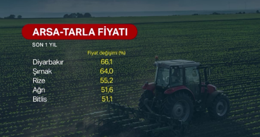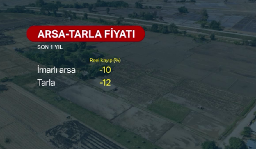 Enflasyon yüzde 30’un üzerinde olduğu için fiyatlar reel olarak düşmüş oldu. İmarlı arsa fiyatı yüzde 10, tarla fiyatı yüzde 12 değer yitirdi.