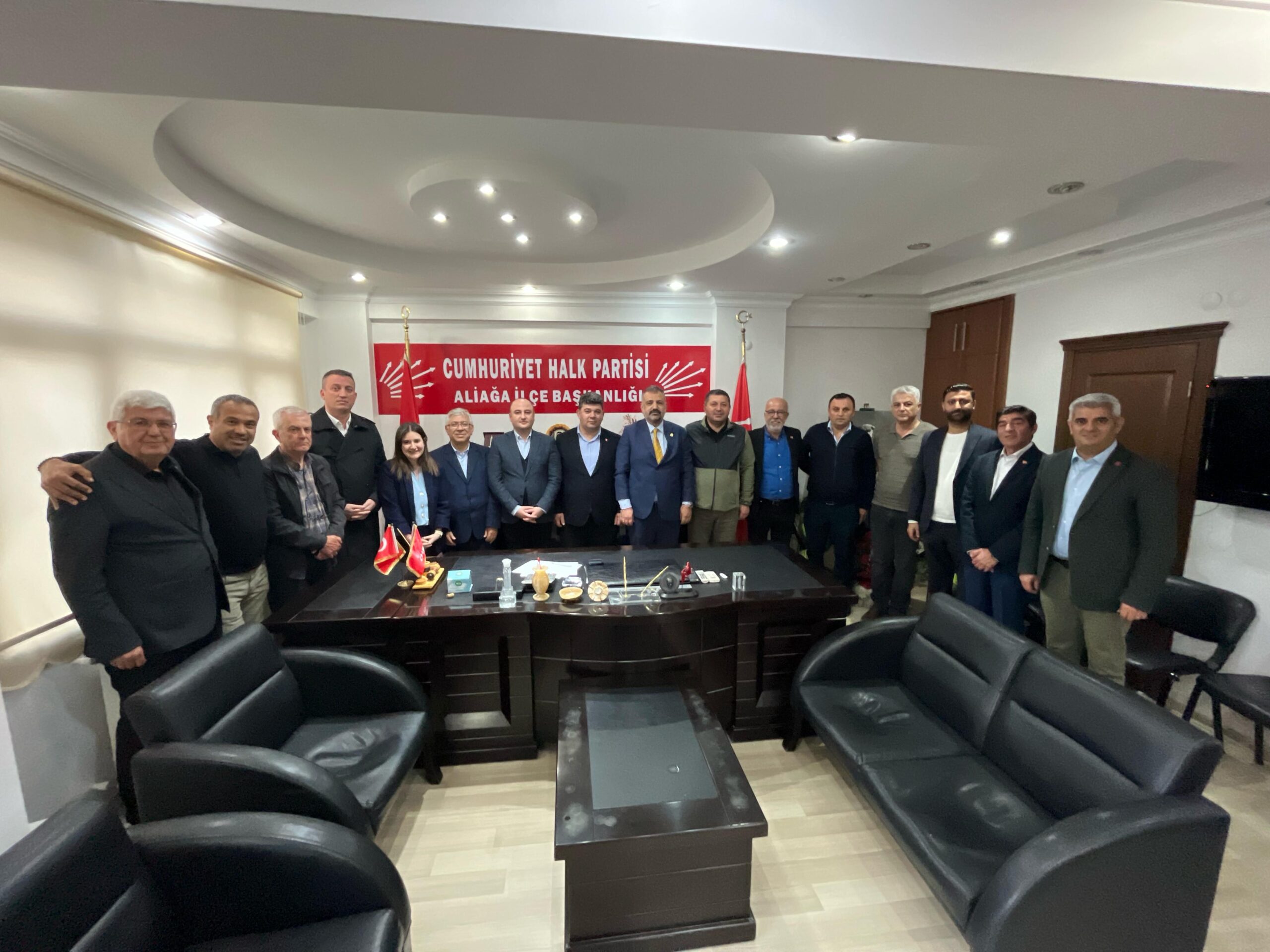 Aslanoğlu, İl başkan yardımcıları ile birlikte ziyaret ettiği Aliağa’da ilk olarak yerel seçimlerde partiden yerel yönetimler için aday adayı olmuş isimlerle CHP Aliağa İlçe Başkanlığında bir araya geldi. Aliağa’daki bu buluşma ile ilçede birlik ve beraberlik fotoğrafı verilirken, kamuoyuna “Aliağa’da sorun yok, bir arada, yan yana omuz omuzayız” mesajı verildi.