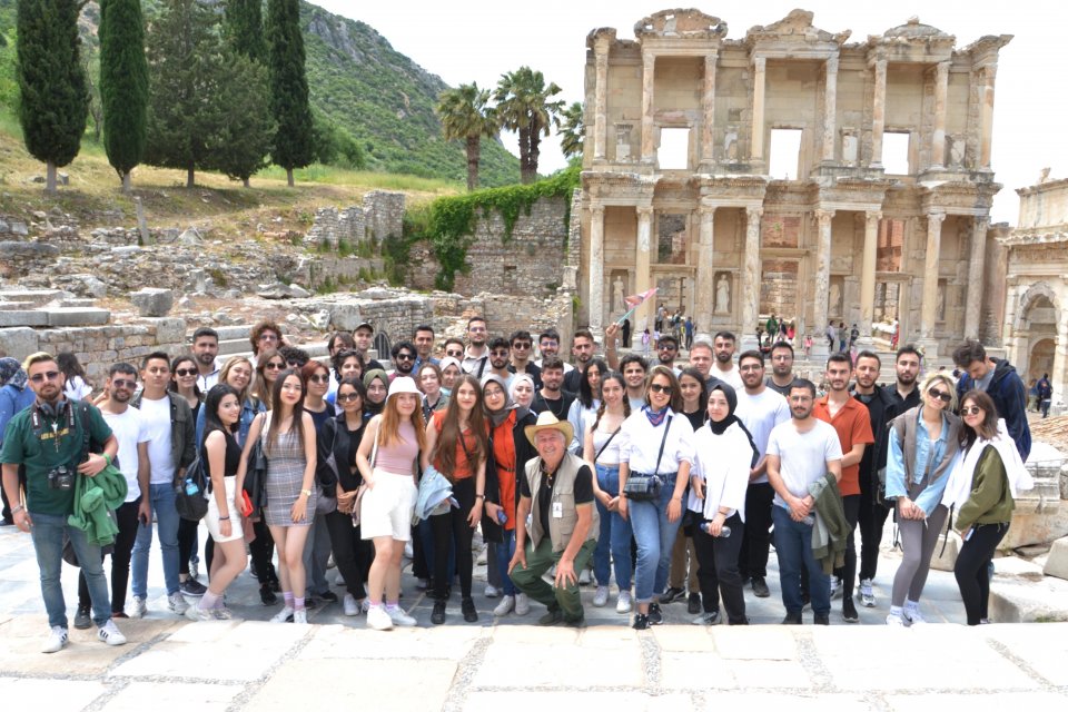 Anadolu’nun farklı illerinden gelerek Balçova’da eğitim gören üniversite öğrencileri, 19 Mayıs Atatürk’ü Anma, Gençlik ve Spor Bayramı nedeniyle Efes Antik Kent’e geziye götürüldü.