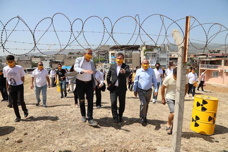 İzmir’in Çernobil’i olarak bilinen alanda toprağa gömülü halde bulunan radyoaktif atıkların 14 yıldır toprağa, suya ve havaya karışarak tüm İzmir’in sağlığını tehdit ettiğine vurgu yapan Başkan Arda, herkesin bu soruna sahip çıkması gerektiğini söyledi. Nükleer atık probleminden dolayı bölgede yaşayan insanların sağlığının tehdit altında olduğuna ve buna rağmen hiçbir çözüm üretilmediğine vurgu yapan Başkan Halil Arda; devletin, alanın temizlenmesi için zaman kaybetmeden harekete geçmesi gerektiğini söyledi. Başkan Arda, “Tehlike çok büyük. Bu bölgede yaşayan vatandaşlarımızın sağlık sorunlarının neler olduğunu ben biliyorum. Mahallede kanser hastaları, sakat doğan çocuklar gibi birçok sağlık sorunu yaşayan insanlar var. Bu insanlar buradaki tehlikeyi yaşıyorlar. Ben de Gaziemir Belediye Başkanı olarak buraya sadece Gaziemir’in değil; tüm İzmir’in, Türkiye’nin dikkatini çekmek istiyorum. Burası Türkiye’de bilinen ilk nükleer atıkların olduğu yer. Burası nükleer santral yapan Türkiye için bir ödev. Burayı temizleyemeyen bir ülke, yapacağı nükleer santrallerde nasıl önlem alacak? O santralin atıkları ne olacak? Çevre ve Şehircilik Bakanlığını göreve davet ediyoruz. Masum bir isteğimiz var. Burası temizlensin!” diye konuştu.