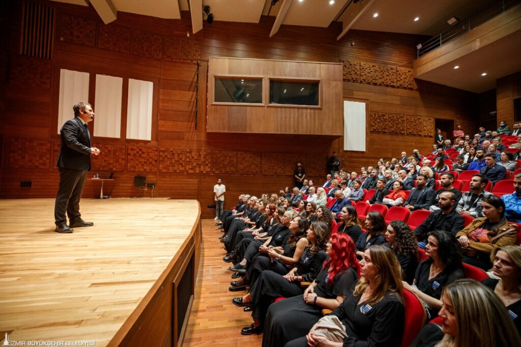 Söyleşinin ardından sahne alan İzmir Büyükşehir Belediyesi Çok Sesli Kadın Korosu, şarkılarını ulu önder Mustafa Kemal Atatürk için seslendirdi.