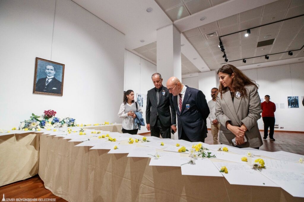 İzmir’in dört bir yanından Atatürk’e yazılan mektupların Atatürk portreleriyle yer aldığı sergiyi gezen Başkan Soyer, “Binlerce yurttaşımız Atatürk’e olan özlemini satırlara dökmüş. Bütün mektuplar çok güzel. Cümleler boğazımda düğümleniyor” dedi.