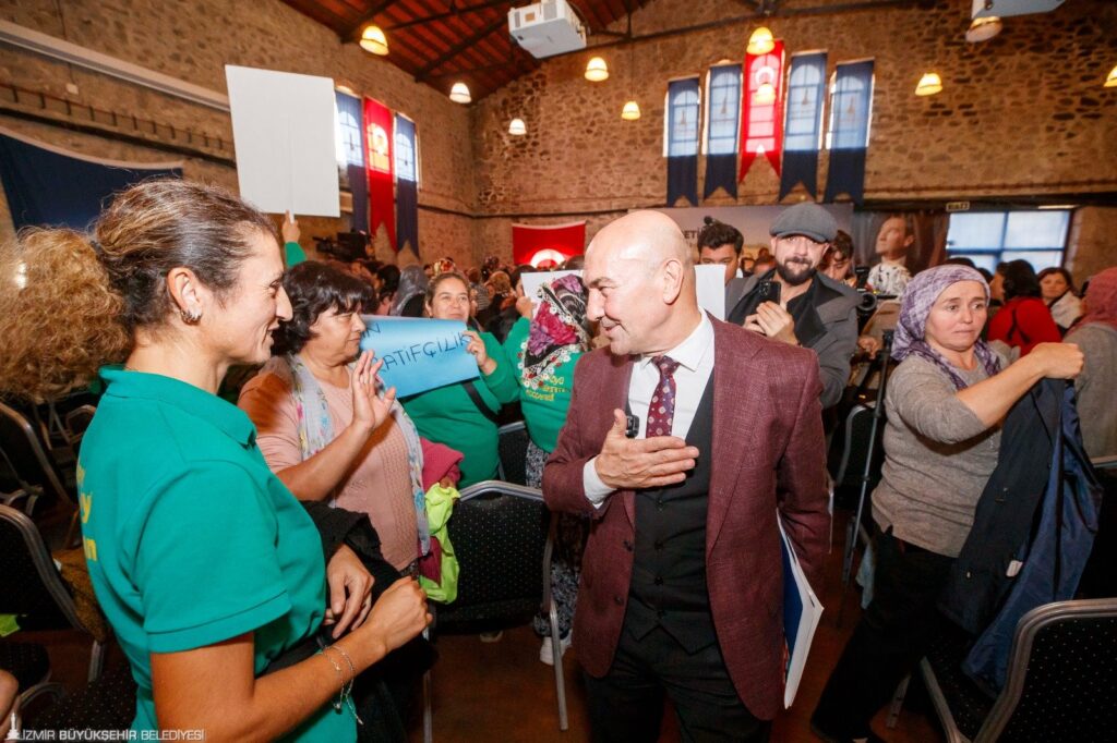 Mücadele vurgusunu yineleyen Başkan Soyer, “5 yıldır İzmir’de ilmek ilmek ördüğümüz ‘Başka Bir Tarım Mümkün’ politikasına darbe yapılmıştır. Ama biz bundan asla vazgeçmeyeceğiz. Belediyemizin kooperatiflerden alarak 1 – 5 yaş arası çocuklarımıza dağıttığı Süt Kuzusu Projesi, Sayıştay eliyle durdurulmuştur. Buna teslim olmayacağız. Ne çocuklarınızı sütsüz ne de kooperatiflerimizi öksüz bırakmayacağız. Süt Kuzusu projesini de diğer tarımsal projelerimizi de sonuna kadar devam ettireceğim. Ben gücümü halktan ve haktan alıyorum. Yok öyle yağma. Sizden, sizin alın terinizden, emeğinizden asla vazgeçmem. Siz bu memleketin geleceğisiniz. Siz bu memlekette tam bağımsız bir ekonomi yaratmak için var olmalısınız. Asla vazgeçmeyeceğiz. Yeni bir yol bulmaksa; bulacağız. Yeni bir yol açmaksa; açacağız. Bir bedel ödenecekse de ödeyeceğiz. Hiç merak etmeyin. İstedikleri bedeli ödetsinler umurumda değil. Sizi enflasyona ezdirmeyeceğiz. Yoksulluğa mahkum etmeyeceğiz. Ürününüzün dökülmesine izin vermeyeceğiz” dedi.