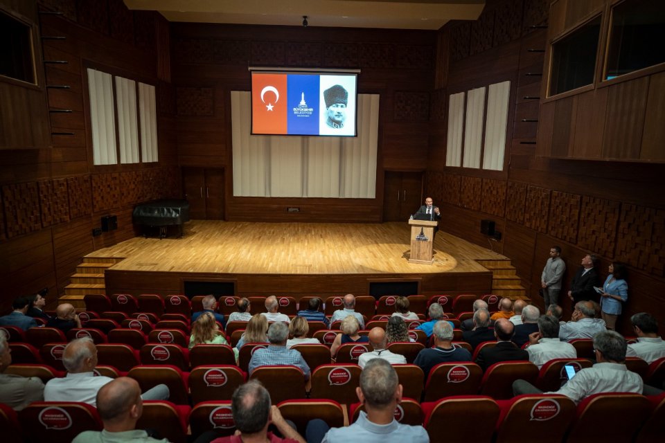 Toplantıda Başkan Tunç Soyer’in üç yıllık hizmet dönemindeki çalışmalara ilişkin sunumlar yapıldı.