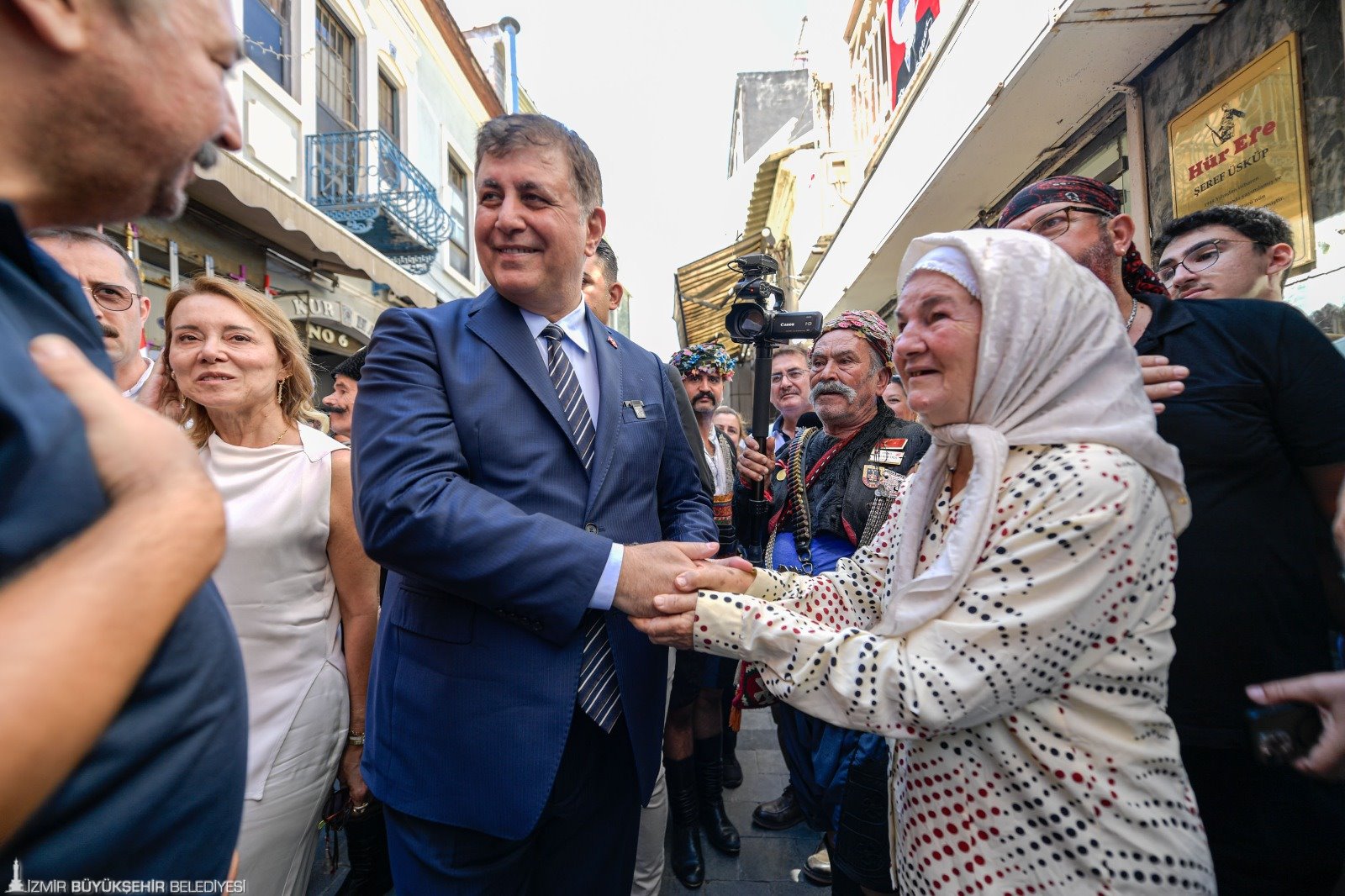 İzmir Büyükşehir Belediye Başkanı Dr. Cemil Tugay, 9 Eylül kutlamaları kapsamında Kemeraltı İkinci Beyler Sokağı’nda 74 yıldır düzenlenen Efe-Zeybek Buluşması’na katıldı.