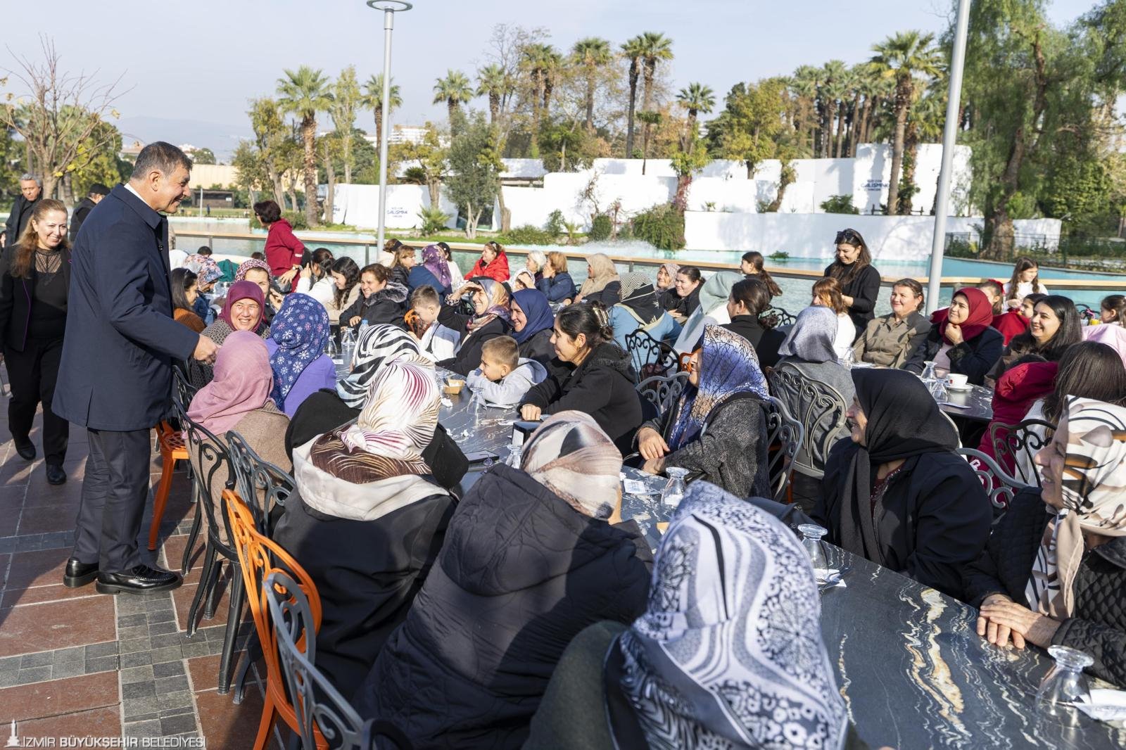 Başkan Tugay da Eriklili kadın ve çocuklarla Kültürpark’ta Göl Gazinosu’nda bir araya gelerek yeni yılını kutladı.