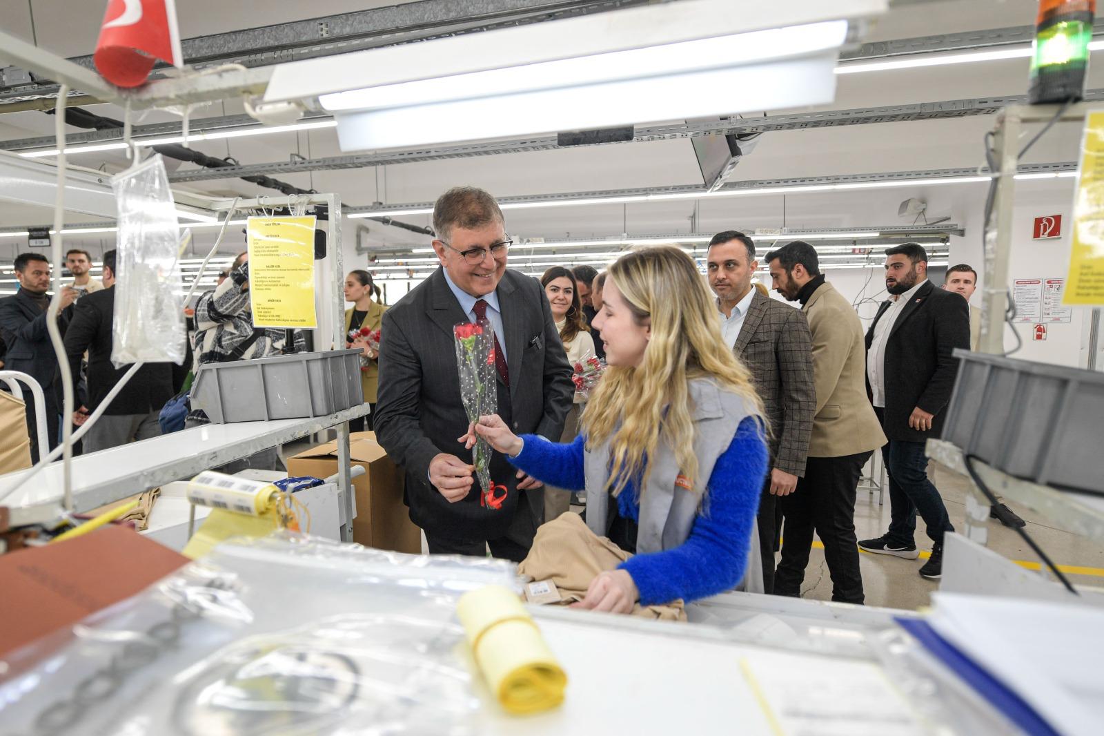 Çalışanlarının yüzde 85’i kadın olan Narkonteks Tekstil AŞ’yi ziyaret eden Başkan Dr. Cemil Tugay, üretim yapan kadın işçilere karanfil dağıttı ve birlikte yemek yedi. Başkan Tugay’a CHP İzmir İl Başkanı Şenol Aslanoğlu, Buca Belediye Başkanı Görkem Duman, CHP Kadın Kolları üyeleri de eşlik etti. Narkonteks Tekstil AŞ Yönetim Kurulu Başkanı ve Buca Ege Organize Sanayi Bölgesi Yönetim Kurulu Başkanı Toygar Narbay, Yönetim Kurulu Başkan Yardımcısı Tolga Narbay ve yönetim kurulu üyeleri Tugay’a üretimlerine ilişkin sunum yaptı.