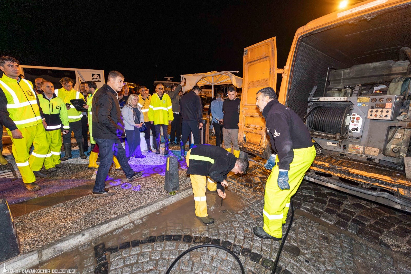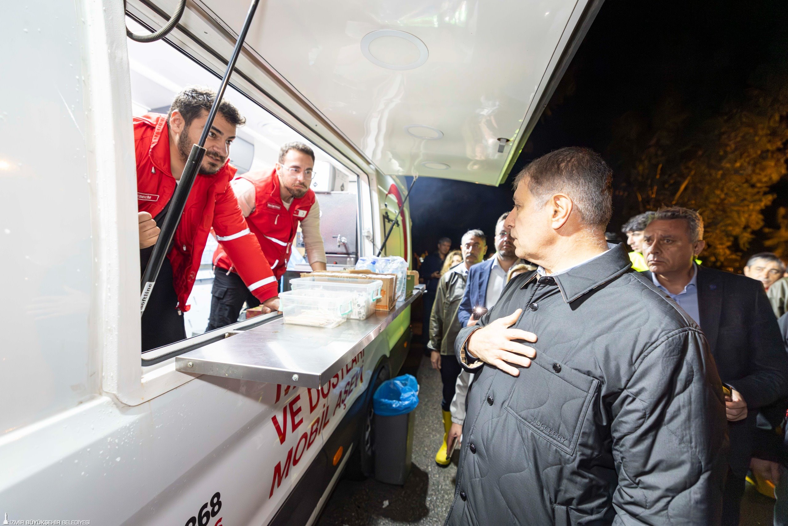 İzmir Büyükşehir Belediyesi İZSU ve itfaiye ekiplerinin yanı sıra Afet İşleri Dairesi, İklim Değişikliği ve Sıfır Atık Dairesi, Sosyal Hizmetler Dairesi, Muhtarlık İşleri Dairesi, Fen İşleri ve Veteriner İşleri Dairesi Başkanlığı ekipleriyle ilçede yaşamı normale döndürmek için 197 araç ve 350 personelle bölgede su tahliye çalışmalarını yürütürken, vatandaşların da ihtiyaçlarını karşılamak için çalışıyor.
