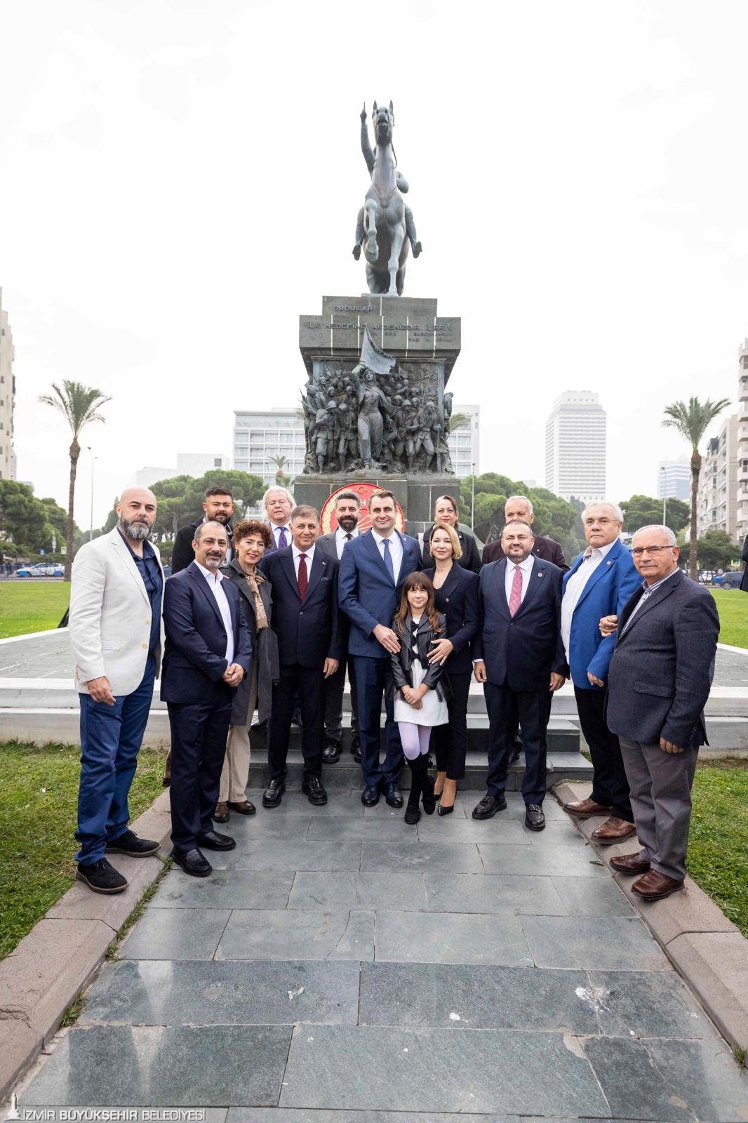 İzmir Büyükşehir Belediye Başkanı Dr. Cemil Tugay, CHP İzmir İl Başkanlığı’na seçilen Çağatay Güç’ün mazbatasını almasının ardından Cumhuriyet Meydanı’nda düzenlenen çelenk törenine katıldı.