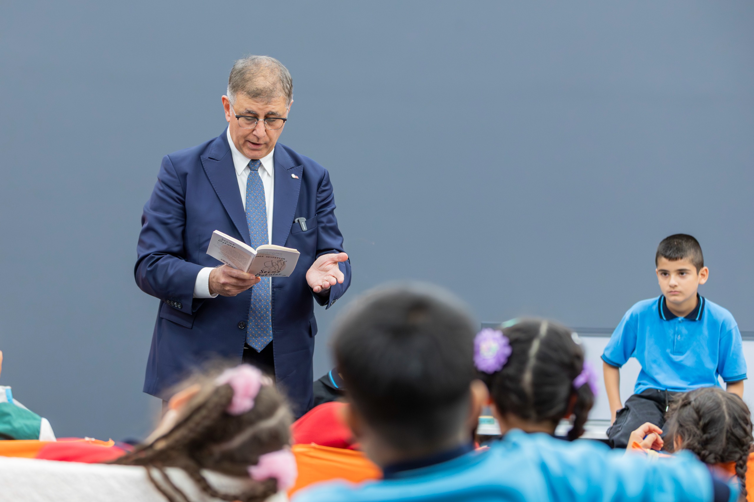 Çocuklara kitap okumanın önemini aktaran Başkan Tugay, “Hikâyeler, güzel ve ilginç olayları okuyarak canlandırmamıza olanak tanıdığı için güzeldir. Hikâyede anlatılan şeyi gerçekten yaşıyormuşuz gibi düşünmeye çalışırız. Ömer Seyfettin, eski zamanlarda yaşamış Türk yazarlardan biridir. Onun çocuklar için yazdığı hikâyelerden oluşan kitabını, babam bana ilkokul 2. sınıftayken hediye etmişti. O hikâyeleri okuduktan sonra kitap okumayı çok sever oldum. Hayal etmeyi herkes sever. Hayal etmek için kitaplar çok iyidir. Yaşamadığımız, görmediğimiz pek çok şeyi kitaplar aracılığıyla sanki yaşıyormuş ve görüyormuşsunuz gibi düşünebilirsiniz” dedi.