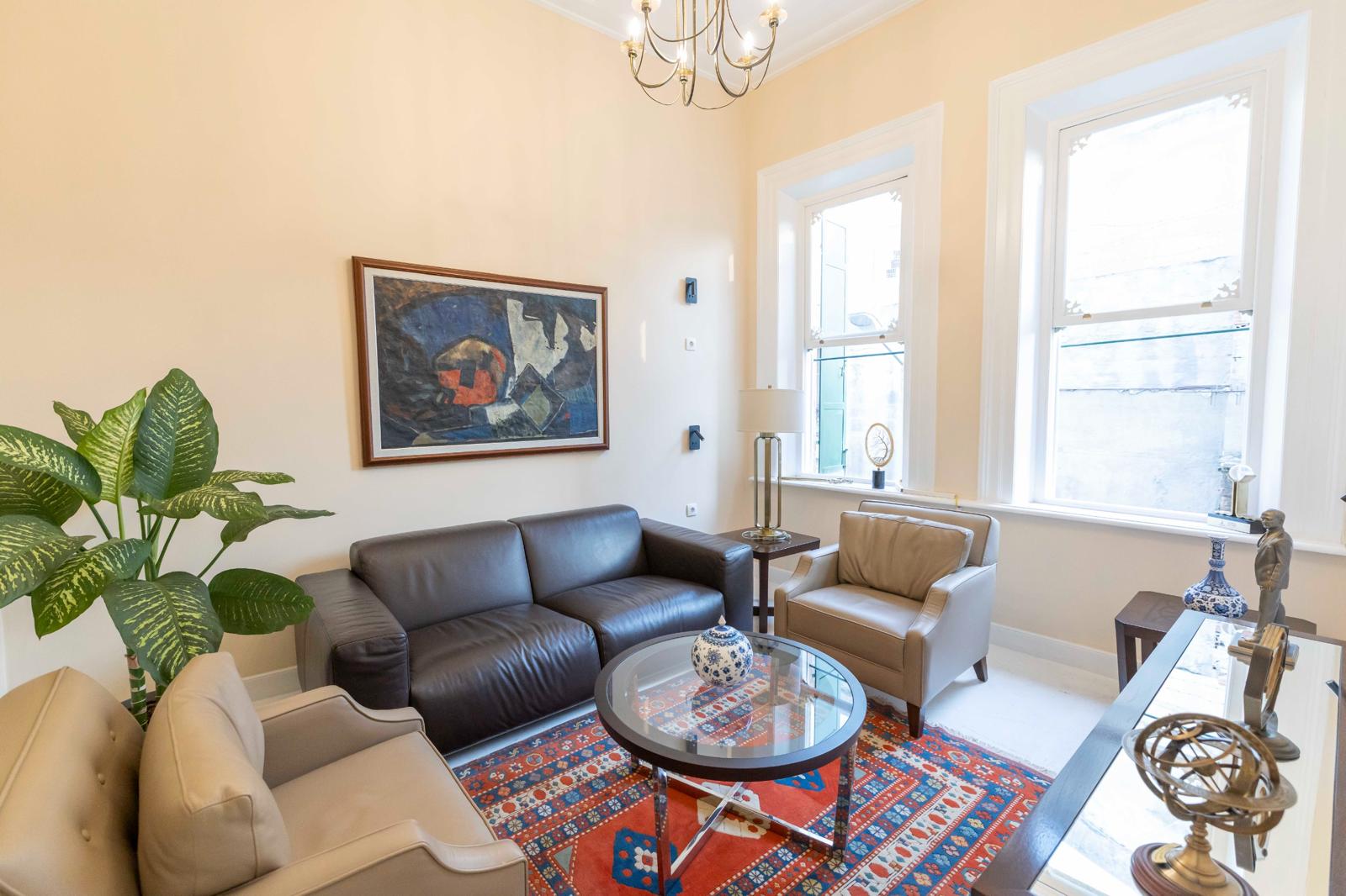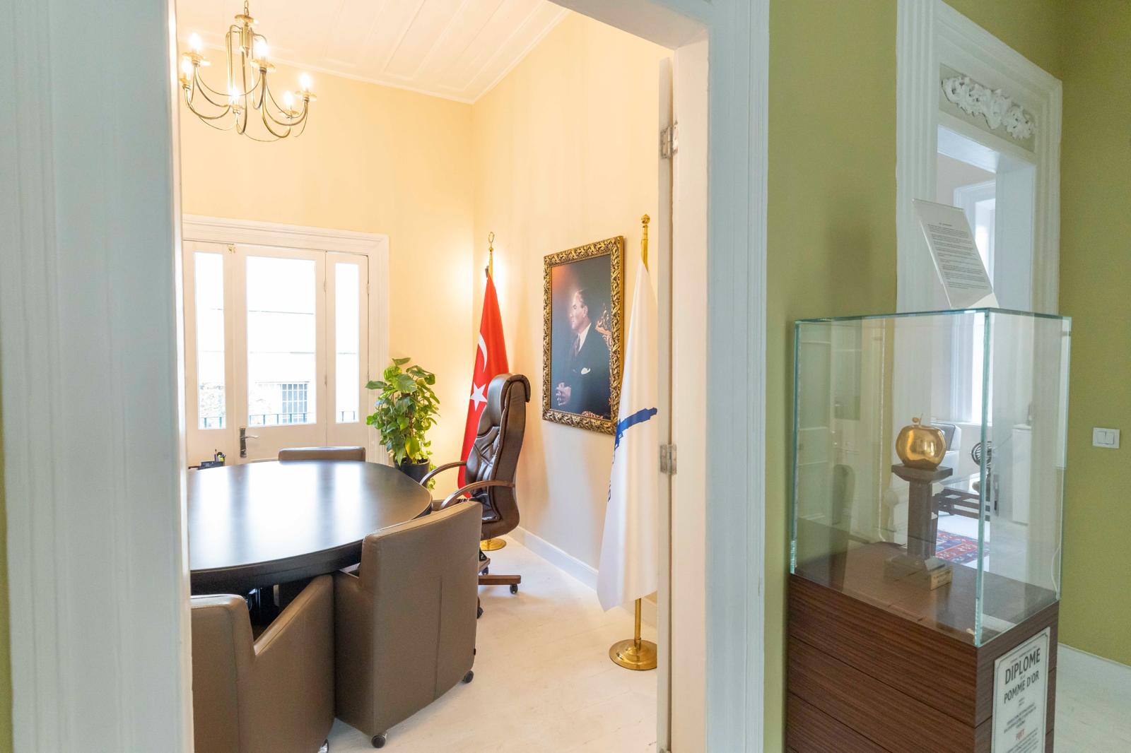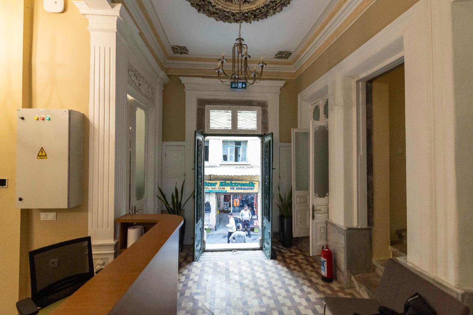 Çeşitli göbek süslemeleri, tavandaki küçük detaylar korunarak boyandı, tekrar özgün formuna kavuşturuldu. Bina teslim aldığında doğramalarında, duvarlarında ve detaylarında bulunan boyalar incelikle temizlendi, özgün formuna geri kazandırıldı.