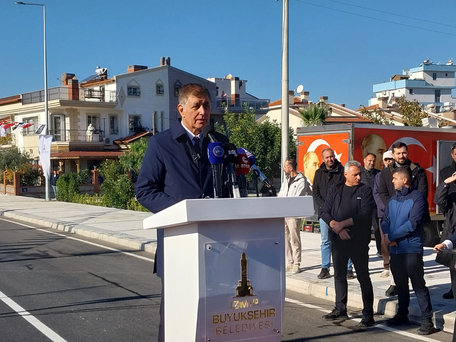 Güzelbahçe’de düzenlenen 75. Yıl Cumhuriyet Bulvarı açılış töreni, Ankara ile İzmir arasındaki “su ve hijyen” polemiğinin en sert raunduna sahne oldu.