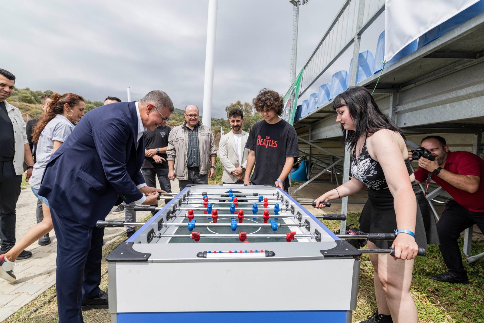 Başkan Dr. Cemil Tugay’a Menderes Belediye Başkanı İlkay Çiçek, Seferihisar Belediye Başkanı İsmail Yetişkin ve İzmir Büyükşehir bürokratları eşlik etti. Özdere Gençlik Kampı’nı inceleyen Başkan Tugay, ardından gençlerle bir araya gelerek langırt oynadı.