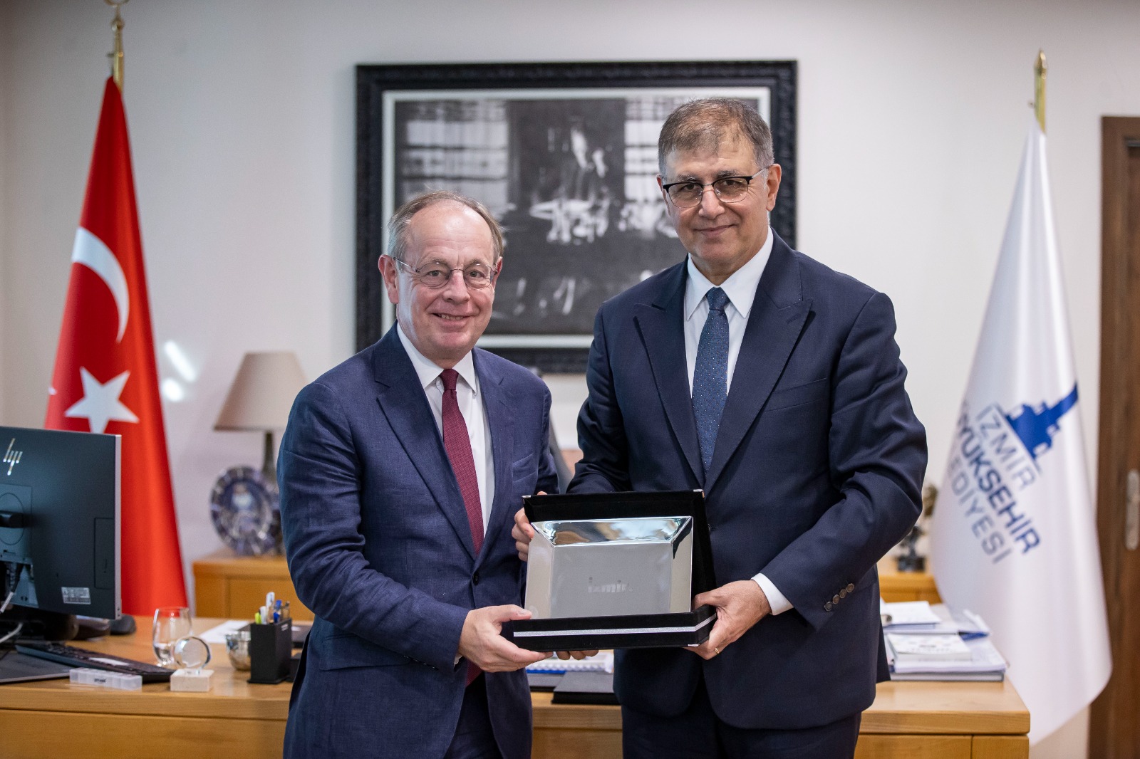 İzmir Büyükşehir Belediye Başkanı Dr. Cemil Tugay, Avrupa Komisyonu Çevre Genel Müdürlüğü Genel Müdür Vekili ve Avrupa Birliği (AB) İklim Nötr ve Akıllı Şehirler Misyonu Yöneticisi Patrick Child’ı ağırladı. Başkan Tugay’ı makamında ziyaret eden Patrick Child, kente dair gözlemlerini anlattı. Tugay ve Child daha sonra İklim Yurttaş Meclisi üyeleri ile İzQ Girişimcilik Merkezi’nde bir araya gelerek Yurttaş Meclisi’nin oturumuna katıldı ve üyelerin sorularını yanıtladı.