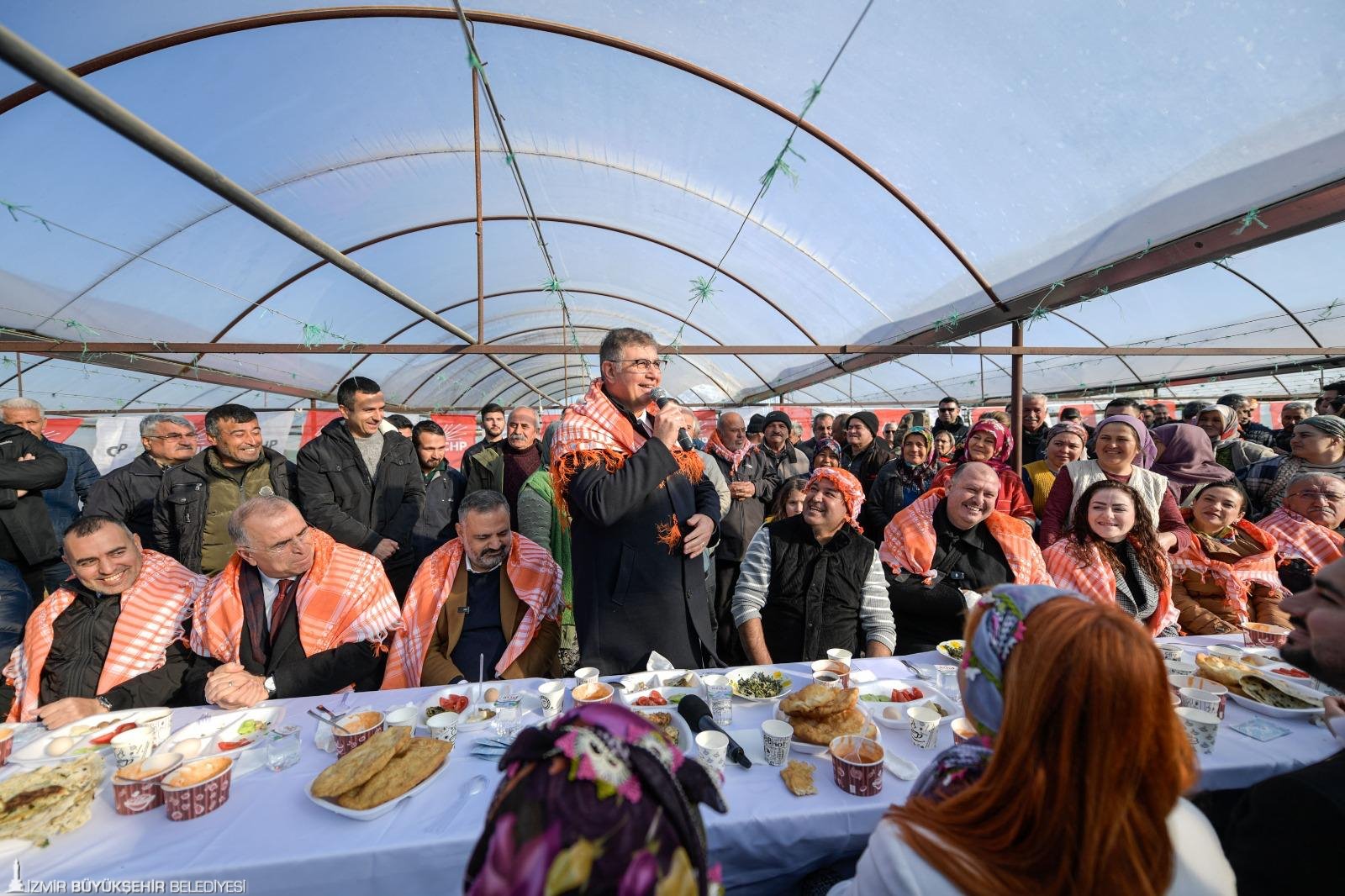 İzmir Büyükşehir Belediye Başkanı Dr. Cemil Tugay, Cumhuriyet Halk Partisi (CHP) İzmir İl Başkanlığı tarafından Menderes’in Sancaklı Köyü’nde düzenlenen çiftçi buluşmasına katıldı. Sancaklı’daki serada düzenlenen buluşmaya Başkan Dr. Cemil Tugay’ın yanı sıra CHP İzmir İl Başkanı Şenol Aslanoğlu, Menderes Belediye Başkanı İlkay Çiçek, Gaziemir Belediye Başkanı Ünal Işık, Selçuk Belediye Başkanı Filiz Ceritoğlu Sengel, CHP geçmiş dönem Milletvekili Musa Çam, İlçe başkanları, il ve ilçe yöneticileri, muhtarlar, kooperatiflerin temsilcileri ve ve üreticiler katıldı.