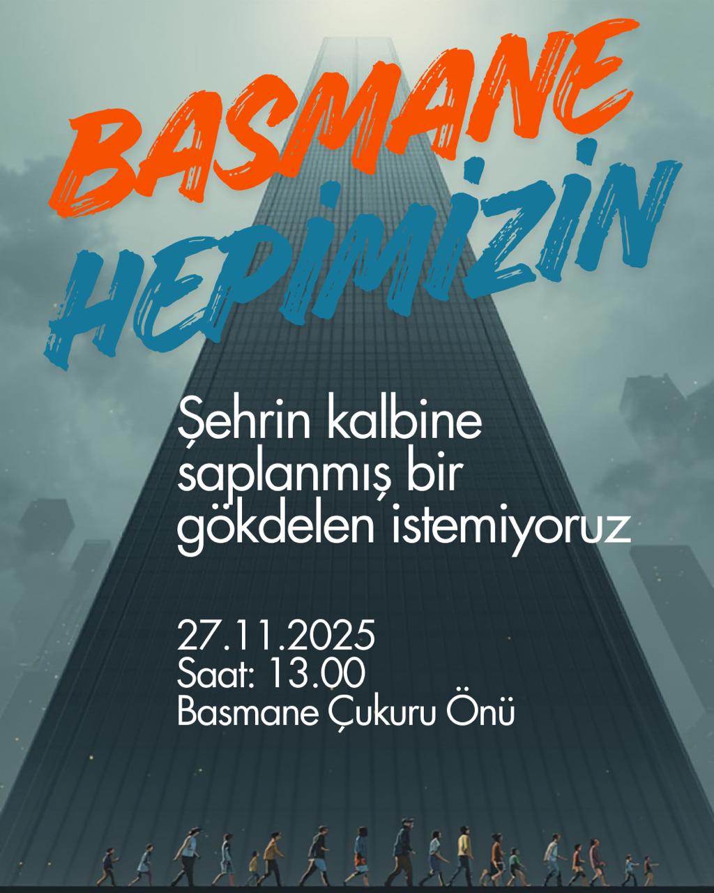 STK’ların ortak açıklamasında, günümüzde “Basmane Çukuru” olarak bilinen alanın tarihçesine değinildi. Açıklamada, “Basmane Arazisi kamuya ait bir yer iken 1997’de yerel yönetim olanaklarının kamu yararına aykırı olarak ihlal edilmesi ile büyük oranda sermayeye teslim edildi” ifadeleri kullanıldı.