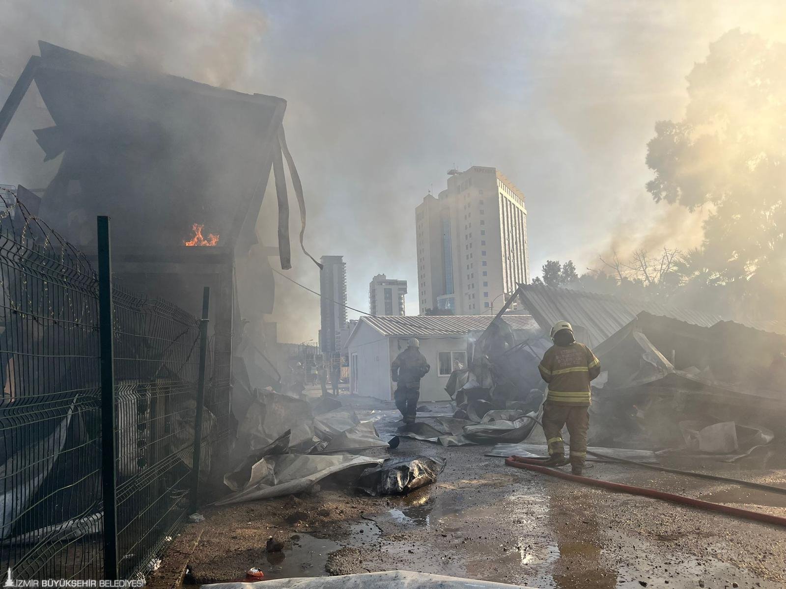 İzmir’in Bayraklı ilçesi Adalet Mahallesi Ozan Abay Caddesi üzerinde bulunan bir inşaat firmasına ait konteynerlerde saat 15.30 sıralarında yangın çıktı.