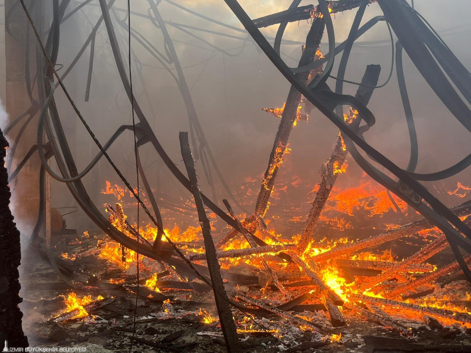 İzmir Büyükşehir İtfaiyesi, Bornova’daki depo yangınını büyümeden kontrol altına aldı.