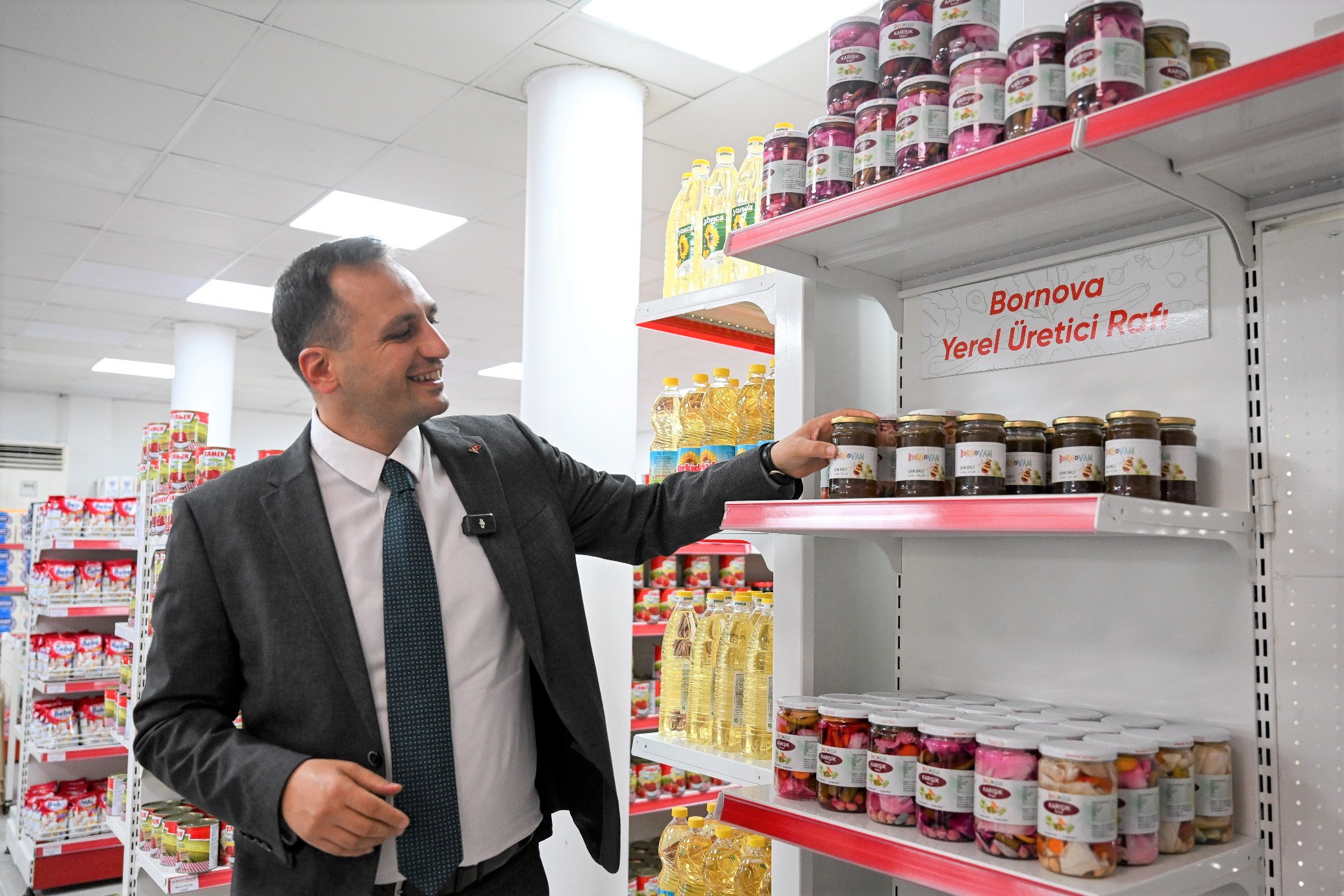 Başkan Eşki, bal sağımının ardından elde edilen balları ihtiyaç sahibi vatandaşlar için Bornova merkezde hizmet veren Kent Market Celal Altınay Şubesi’nin raflarına yerleştirdi.