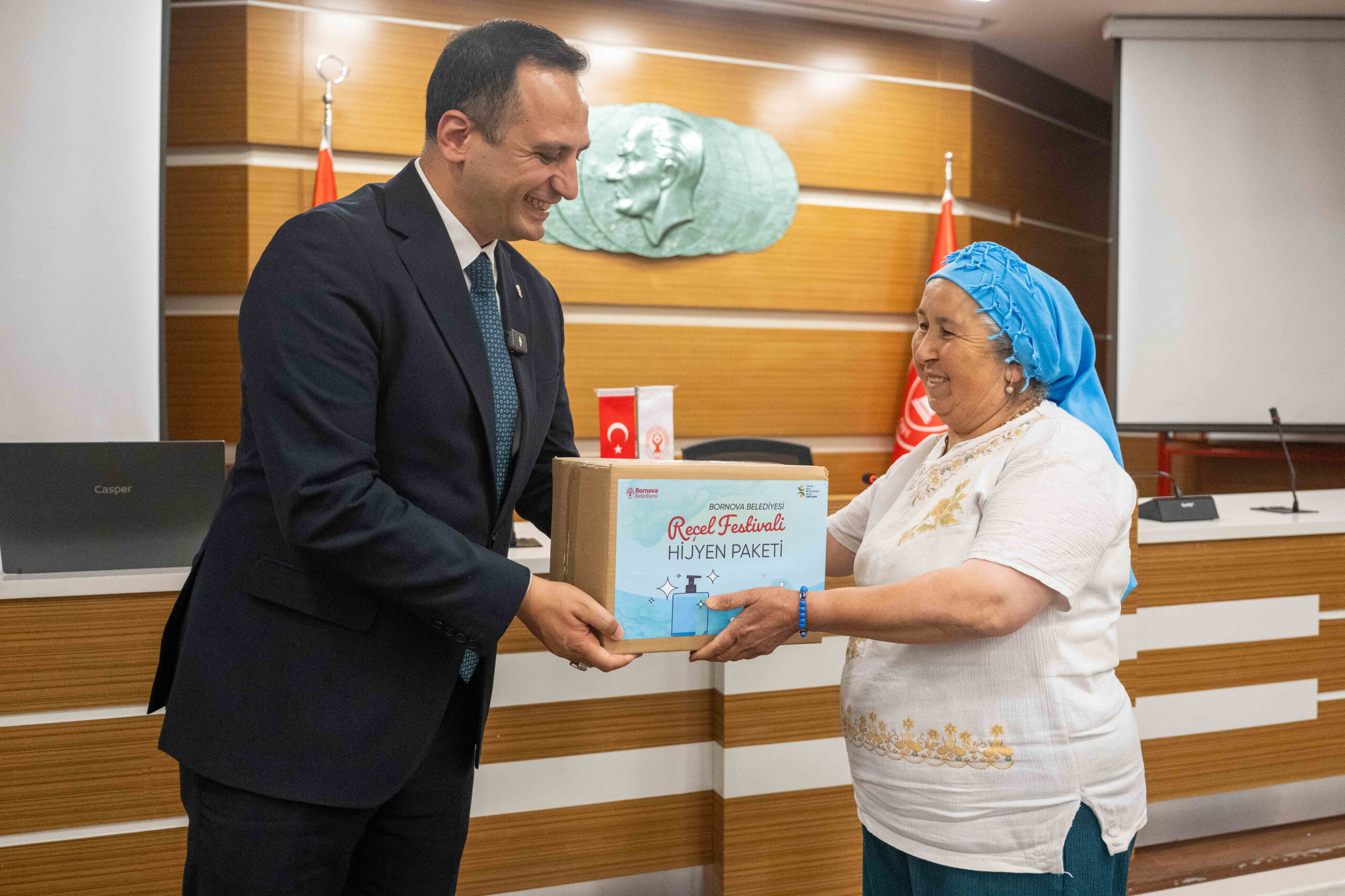 Festival kapsamında sunulacak ürünlerin sağlıklı koşullarda üretilmesini temin etmek amacıyla eğitimler verilmesini öngören protokolün imzalanmasının ardından Bornova’nın 12 kırsal mahallesinden üreticilere hijyen paketleri dağıtıldı.