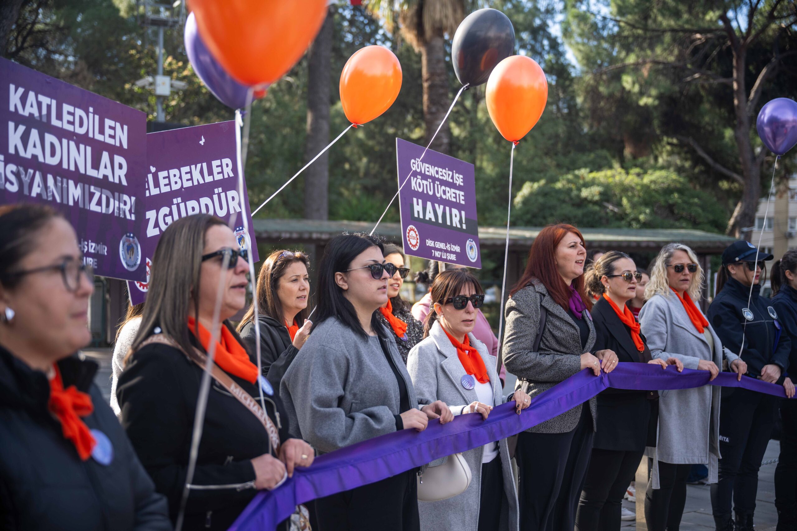 Etkinlikte DİSK Genel İş 7 No’lu Şube Kadın Komitesi Başkanı Gülistan Tilkici hazırlanan bildiriyi okudu. Kadına yönelik şiddet tiyatral bir sunumla ele alınırken, katılımcılar sloganlar atarak dayanışmanın gücünü ortaya koydu. Program, balonların hep birlikte gökyüzüne bırakılmasıyla simgesel bir mesajla sona erdi.