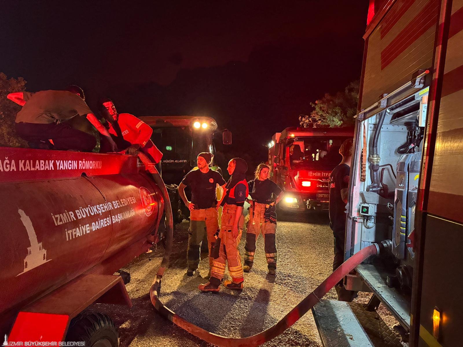 Tüm gece TOMA’lar ve su tankerleri ile bölgede söndürme çalışmaları sürdürüldü.  Alevler bölgedeki hayvan ağıllarına doğru ilerleyince Buca Belediyesi ekipleri, hayvanların uzaklaştırılmasında etkin bir rol oynadı.