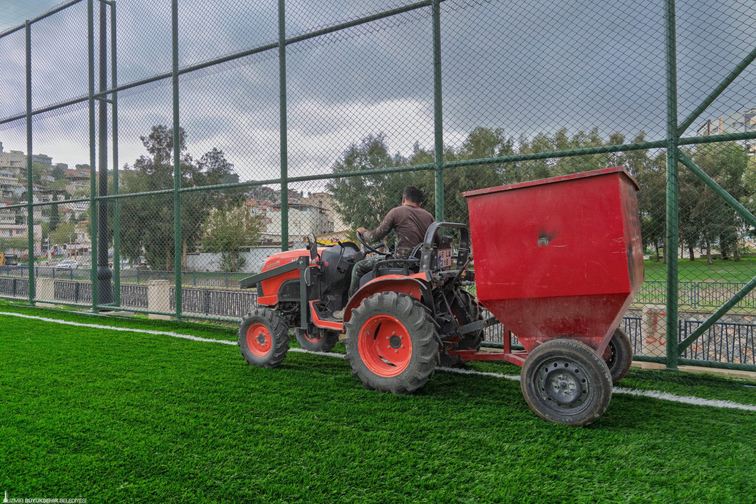 İzmir Büyükşehir Belediyesi, kentin spor alt yapısını güçlendirmek için dört ilçeye yeni halı yapıyor.