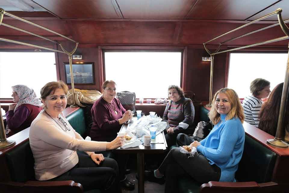 Üçkuyular Feribot İskelesi’nden hareket eden Körfez'in 70 yıllık emektarı nostaljik Bergama Vapuru ile yapılan Körfez turuna 175 kadın katıldı. Kadınlar Körfez manzarası ve canlı müzik eşliğinde iki saat boyunca keyifli vakit geçirdi.