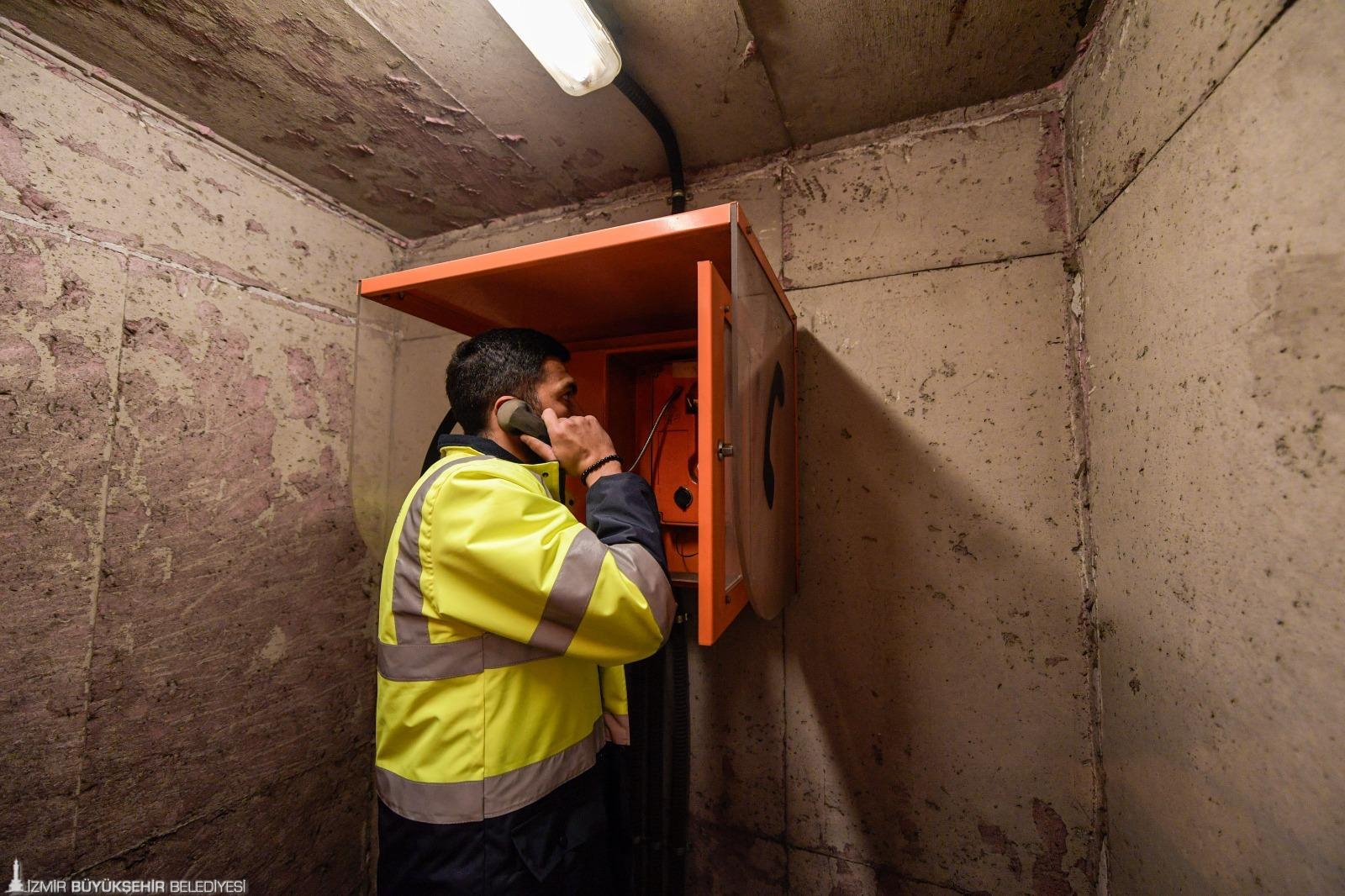 İzmir Büyükşehir Belediyesi Ulaşım Daire Başkanlığı’na bağlı İzmir Ulaşım Merkezi Şube Müdürü Özgür Yalçınkaya, “Herhangi bir yangın ya da acil durum olması durumunda kontrol odasındaki arkadaşlarımız ve elektromekanik sistemlerin tespitinin hemen ardından araçlarla olay yerine intikal ederek gerekli güvenlik önlemlerini alıyoruz. Yangın gibi bir sıkıntı yaşanması durumunda da; algılayıcı sistemle yangın algılanıyor ve orada kuru kimyevi tozla müdahale oluyor. Sistem içinde yer alan yangın su sistemiyle de yangına müdahale sağlanıyor. Trafikle ilgili sorun olduğunda da acil müdahale ekibimiz olay yerine geçip trafik güvenliğini alıyor. Trafik ekiplerimiz 7 gün 24 saat 3 vardiya olarak görev yapıyor. 4 ekibimiz var, her bir ekibimiz 7 kişiden oluşuyor. Vardiya sistemiyle çalışıyoruz. 7 gün 24 saat hem kontrol odasında hem de acil müdahalede personelimiz bulunuyor” dedi.