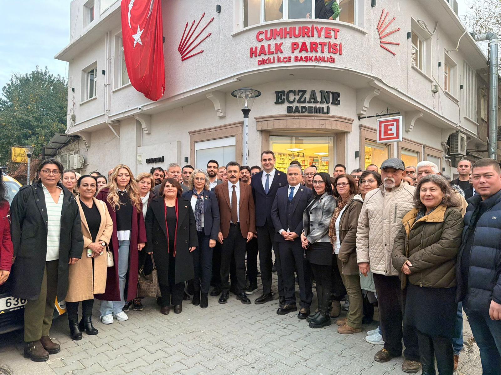 Saha ziyaretinin ikinci durağında Dikili’ye geçen CHP İzmir İl Başkanı Çağatay Güç’ü ilçeye gelişinde CHP Dikili İlçe Başkanı Emre Kırlı, İlçe Belediye Başkanı Adil Kırgöz, parti örgütü ve vatandaşlar karşıladı. Güç, ilçe başkanlığı ziyaretinde ilçenin acil ihtiyacı olan arıtma tesisi ile ilgili krediye bakanlığın onay vermemesi hakkında konuştu. Güç, “Dikili, İzmir’in turizm potansiyeli çok büyük olan bir ilçesi. İlçeye turizmcinin gelmesi, tesisler kurulması için de ilçenin alt yapısının çok iyi olması şart. İzmir Büyükşehir Belediyemiz, Dikili ve Yeni Şakran’ın arıtma tesisi sorununu çözmek için arıtma tesisi projesini hazırladı, kredisini buldu ve ihale aşamasına getirdi. Ancak bu iş için yurt dışından bulunan krediye Maliye ve Hazine Bakanlığı onay vermedi. Yani Dikili’ye hizmetin önünde iktidar yine engel oldu. Dikili’ye, İzmir’e yatırımın önünde iktidarın sürekli engel çıkarması adeta akıl tutulması. Ama biz bu kente hizmet yolunda engel tanımıyoruz. İzmir Büyükşehir Belediye Başkanımız Dr. Cemil Tugay. engellemeye inat arıtma tesisinin İZSU tarafından belediyenin imkanlarıyla yapılacağını açıkladı. İzmir üzerinden olumsuz cümleler kurulmasından, İzmir engelleniyor söyleminden hoşnut olmuyoruz ama sahadaki gerçek maalesef bu. Uygun şartlarda anlaşılmış ve halka hizmet için kullanılacak krediye bakanlığın onay vermemesine engelleme demeyeceksek ne diyeceğiz? Tüm olumsuz şartlara, engellemelere rağmen CHP’li belediyeler hizmet üretiyor. İktidar olduğumuzda partisine bakmaksızın hizmetin önündeki engelleri kaldıran parti olacağız dedi.