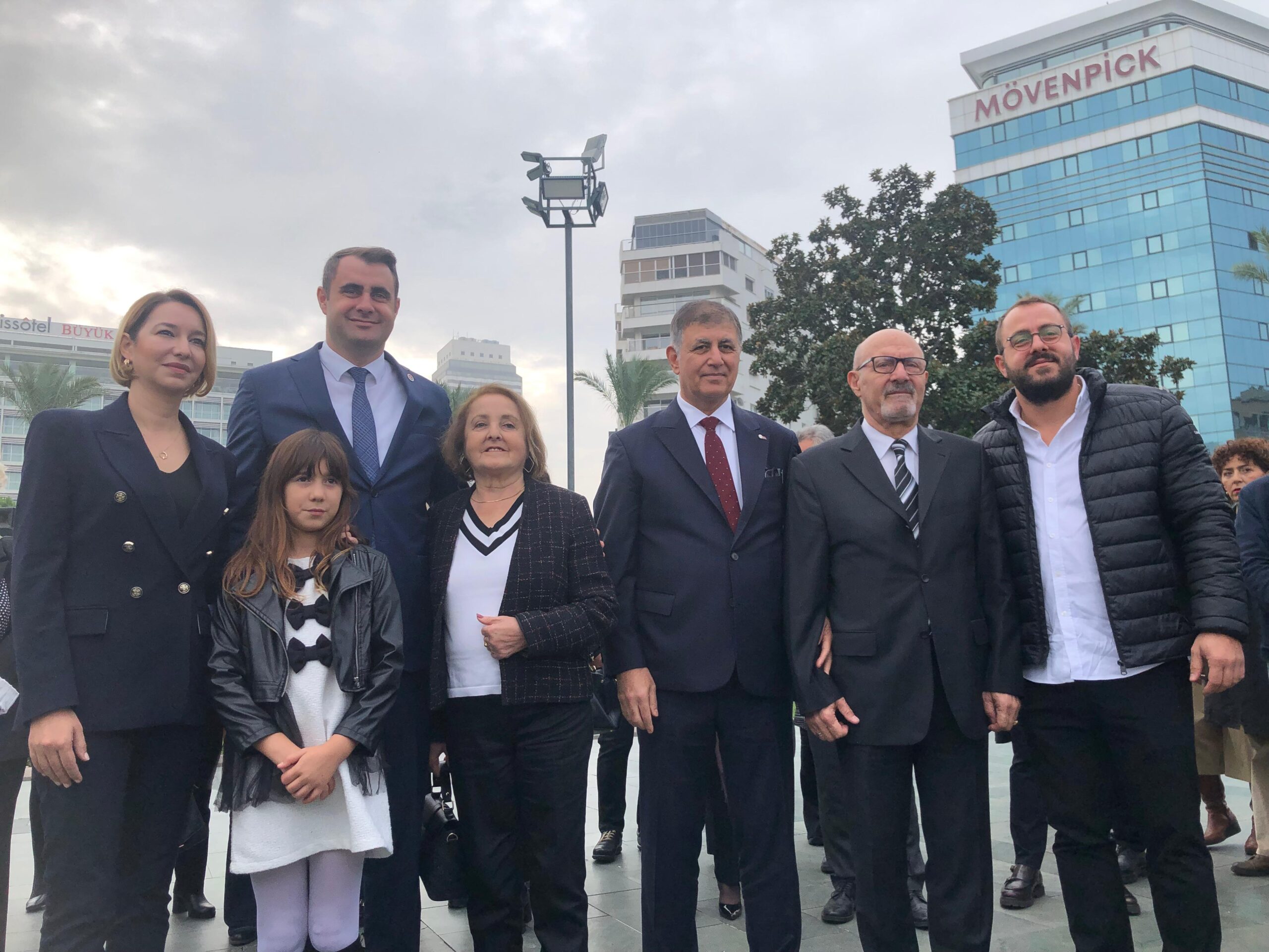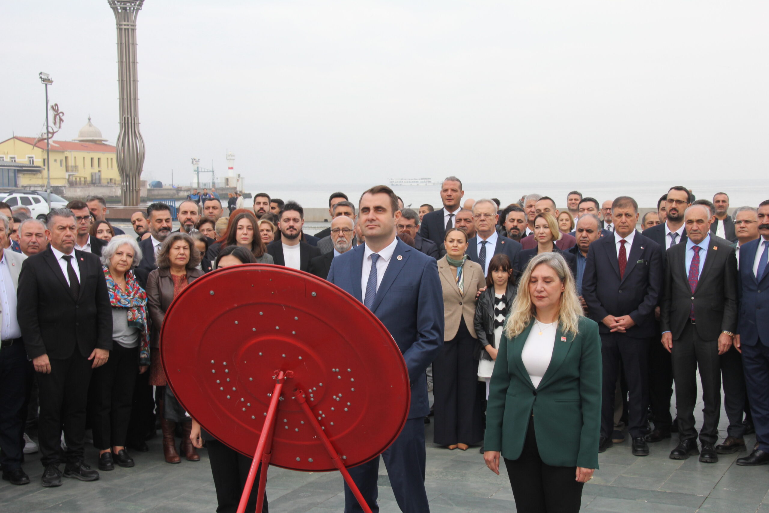 Cumhuriyet Meydanı’nda Atatürk Anıtı’na çelenk bırakan CHP İzmir İl Başkanı Çağatay Güç’ü İzmir Büyükşehir Belediye Başkanı Cemil Tugay da yalnız bırakmadı.