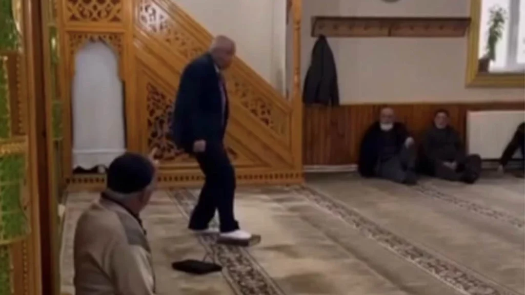 Bu anlar ise camide bulunan dernek üyeleri tarafından cep telefonu kamerası ile kaydedildi. S.K.ya camideki dernek üyeleri de yaptığı hareketten dolayı tepki gösterdi.