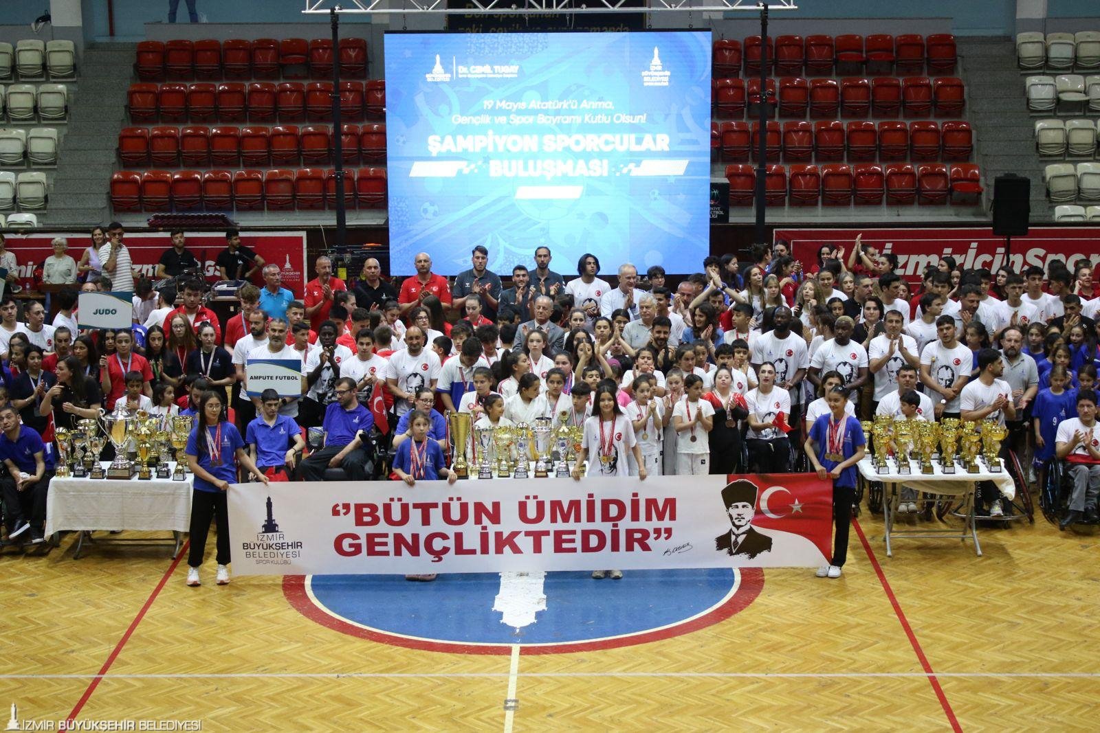 19 Mayıs Atatürk’ü Anma, Gençlik ve Spor Bayramı etkinlikleri kapsamında düzenlenen törende İzmir Büyükşehir Belediyesi Spor Kulübü’nün başarılı sporcuları bir araya geldi.