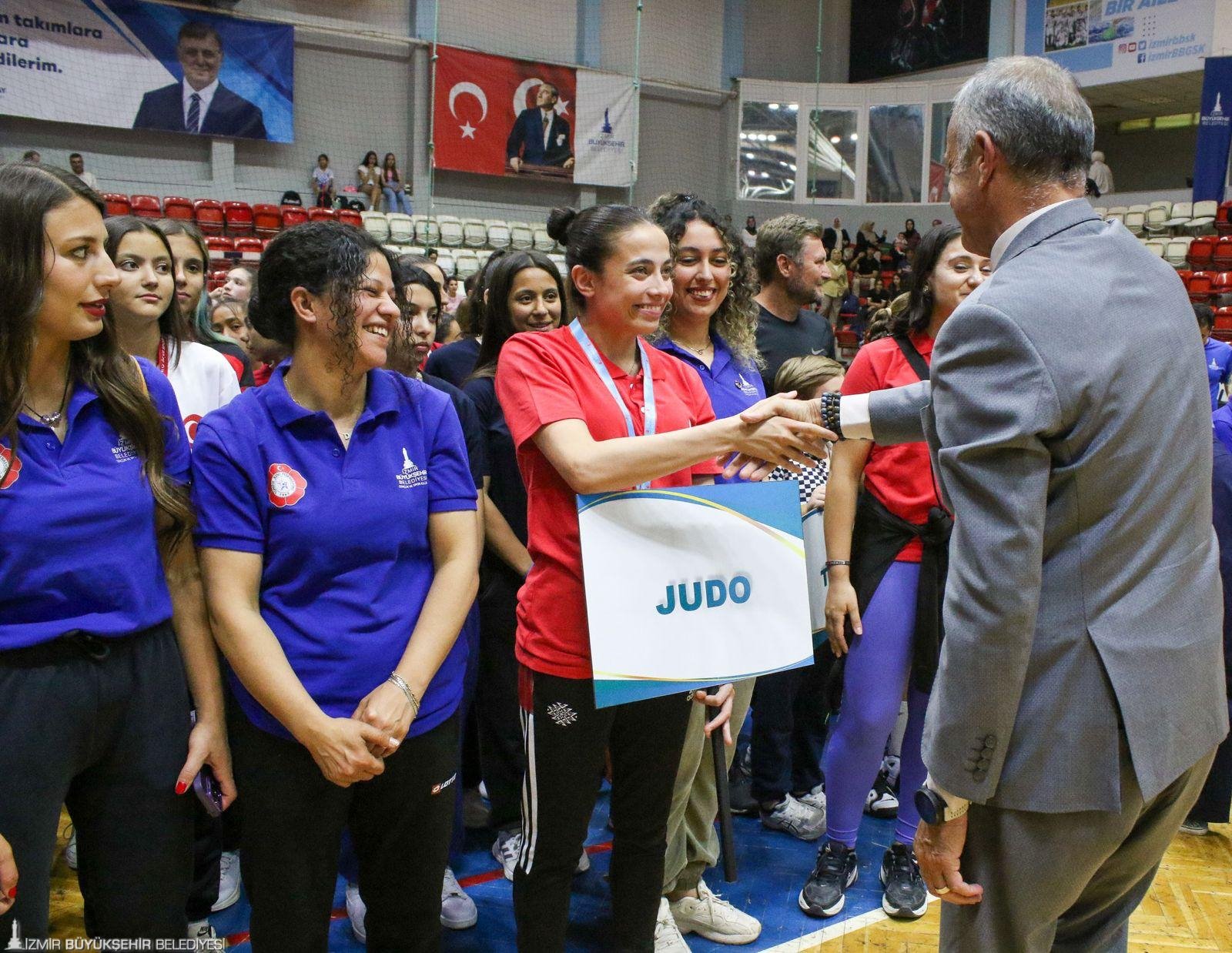 İzmir Büyükşehir Belediyesi Spor Kulübü, çeşitli yarışmalarda madalya kazanan ve milli takımlara davet edilen sporcu ve kulüp antrenörleri için tören düzenledi.