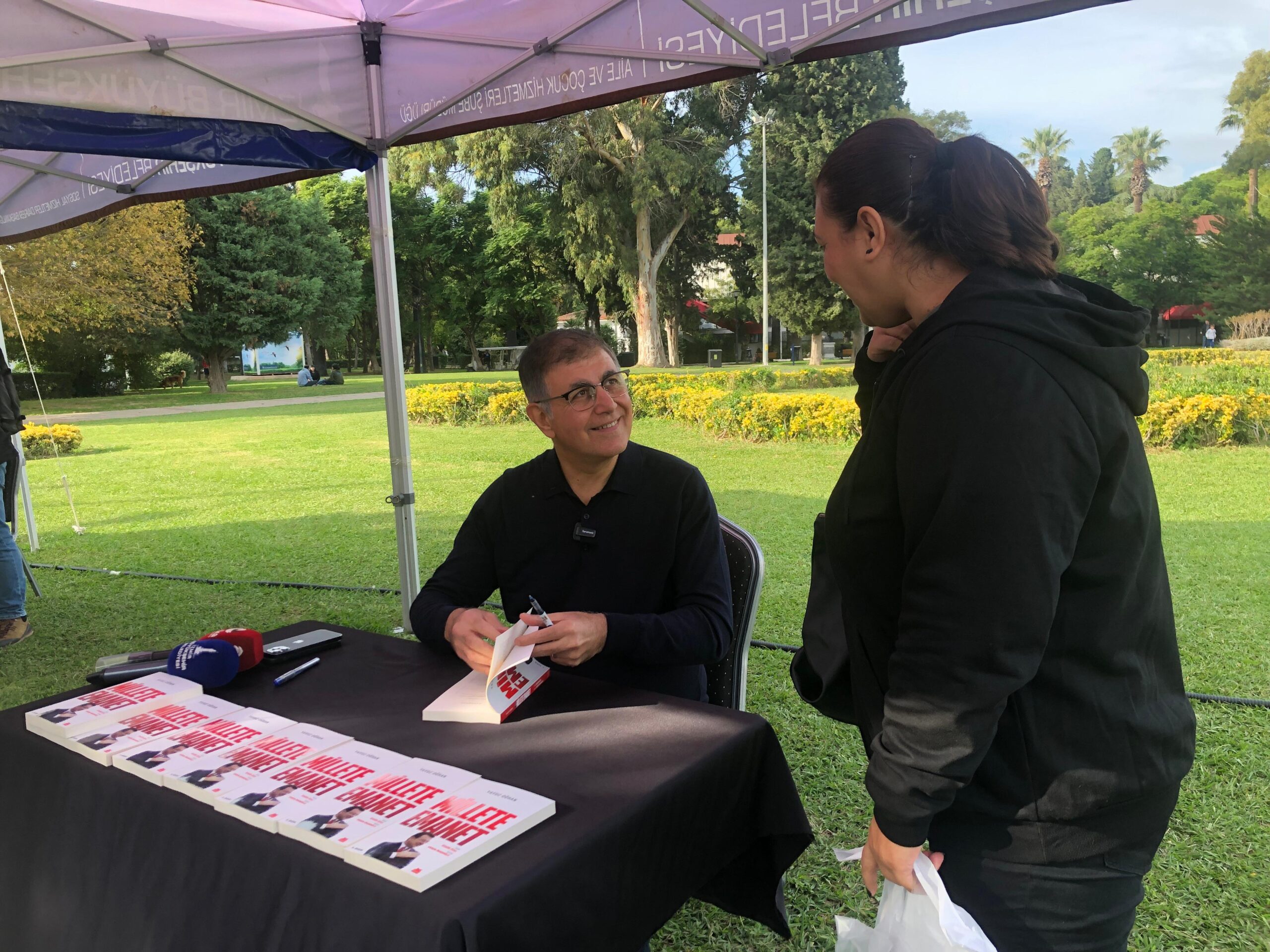 Kitap, İmamoğlu’nun yaşamı ve siyasi mücadelesini konu alıyor. Fuar alanında bu kitaba özel bir stand açıldı. Tugay, kitapları imzalarken özellikle çocuklarla yakından ilgilendi ve onlar adına da kitaplar imzaladı.