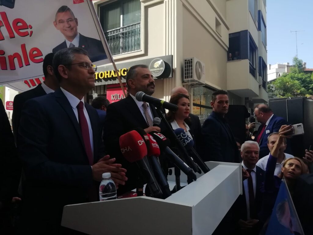 Özgür Özel’in konuşması sırasında kendisine CHP İzmir İl Başkanı Şenol Aslanoğlu, CHP İzmir milletvekilleri de eşlik etti.