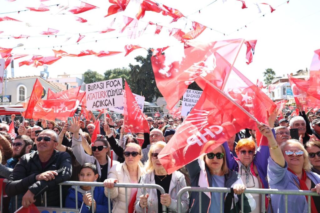 CHP Genel Başkanı Özgür Özel, İzmir programına Foça’dan başladı. Foça Nihat Dirim Barış ve Demokrasi Meydanı’ndaki buluşmaya CHP İzmir Büyükşehir Belediye Başkan Adayı Dr. Cemil Tugay’ın yanı sıra CHP Genel Başkan Yardımcısı ve İzmir Milletvekili Murat Bakan, CHP Genel Başkan Yardımcısı Yankı Bağcıoğlu, CHP İzmir milletvekilleri Mahir Polat, Sevda Erdan Kılıç, Rıfat Nalbantoğlu, Rahmi Aşkın Türeli, Ednan Arslan, CHP İzmir İl Başkanı Şenol Aslanoğlu da katıldı. Konuşmasını yapmak için sahneye çıkan CHP Genel Başkanı Özgür Özel, CHP’nin eski Foça Belediye Başkanı Gökhan Demirağ, Foça Belediye Başkanı Fatih Gürbüz ile CHP’nin Foça Belediye Başkan Adayı Saniye Bora Fıçı da sahneye davet etti. Özel, Gürbüz ve Demirağ’ın, Fıçı’ya destek vermesinden dolayı mutlu olduğunu dile getirerek, “Ne yaparsanız yapın göreve nasıl geldiğiniz değil, nasıl gideceğiniz önemlidir. Bugün Saniye hanımı destekliyoruz ama partililiğini görevi bıraktığında göreceğiz. İki yanında önceki iki belediye başkanımız var. CHP’lilik neymiş herkes görsün” dedi.