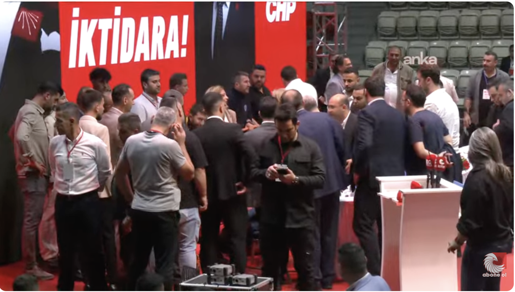 Güç’ün fenalaşmasının ardından salonda büyük bir hareketlilik yaşandı. Basın mensuplarının görüntü alması engellenince kısa süreli arbede çıktı. Kongre görevlileri ve partililer, salonda düzeni sağlamakta güçlük çekti.