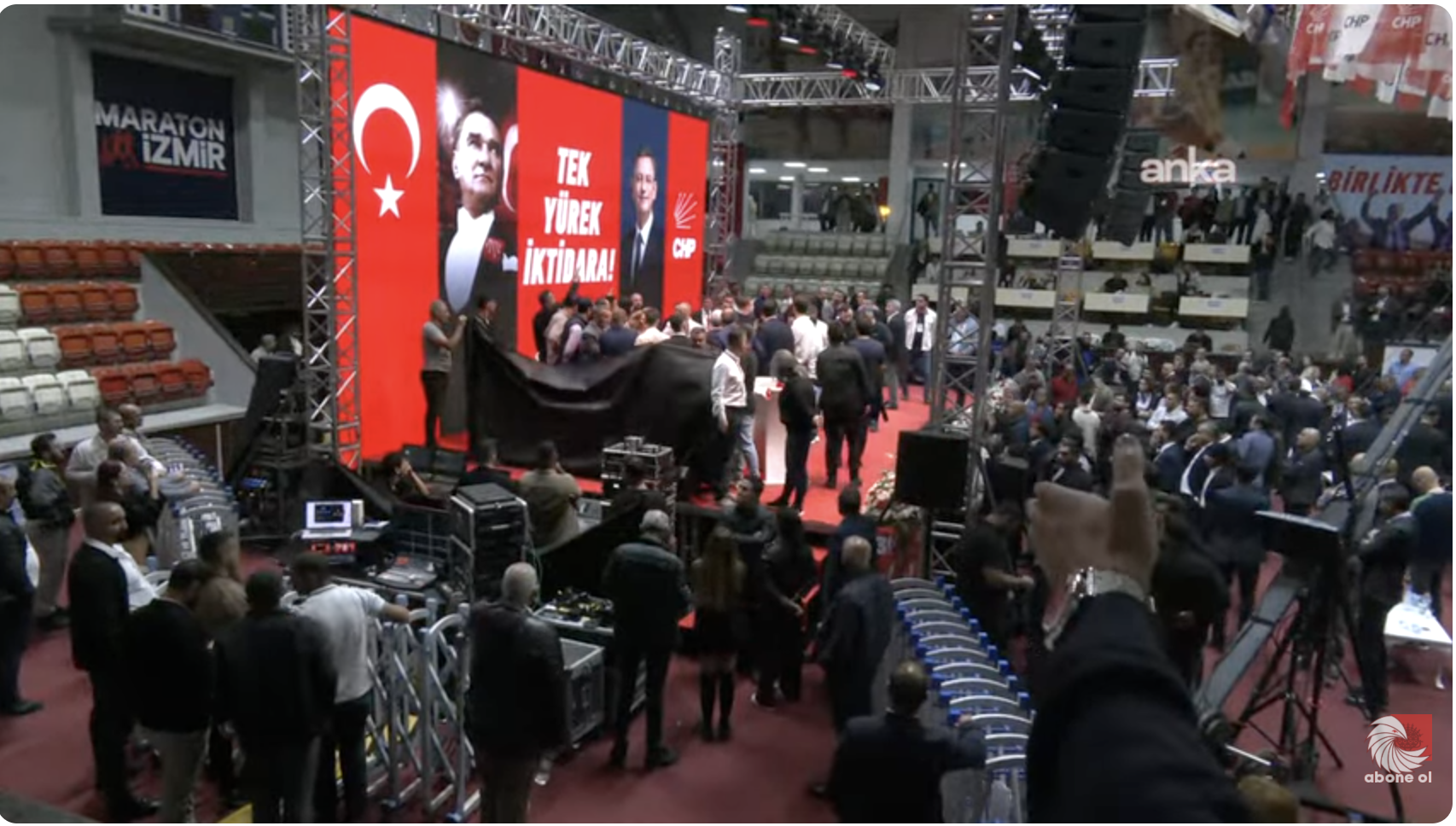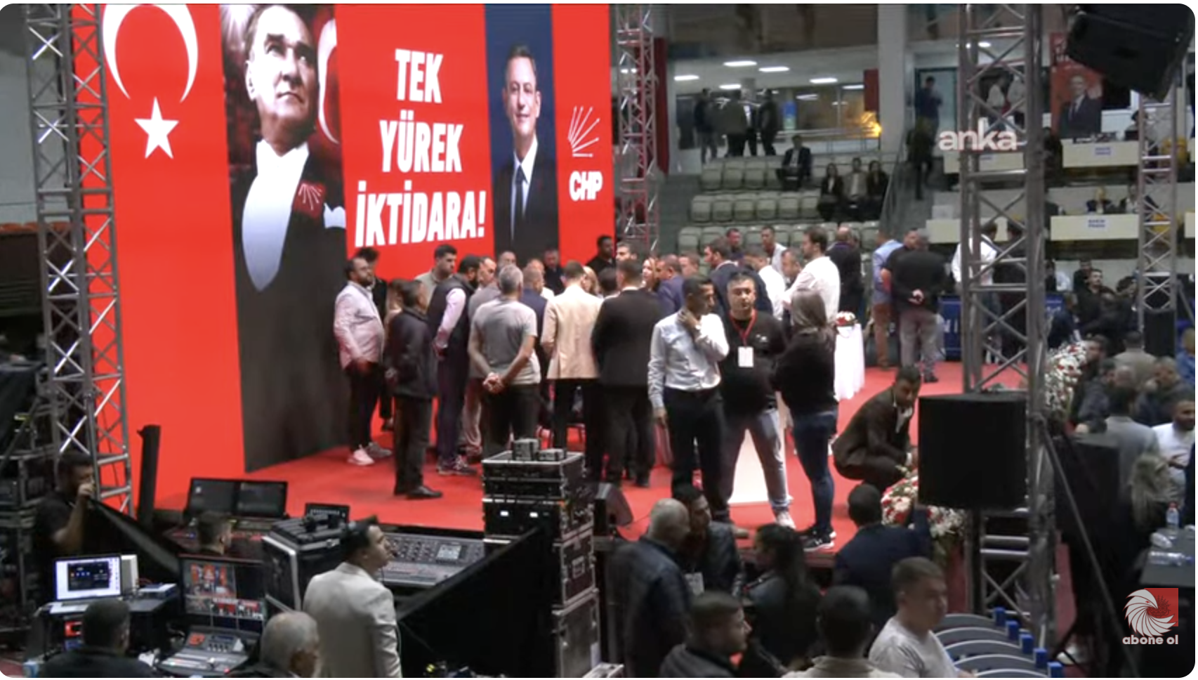 Partililer ve delegelerden, salonun yeniden düzenlenmesinin ardından sadece oy kullanmak üzere içeri alınacağı duyuruldu.