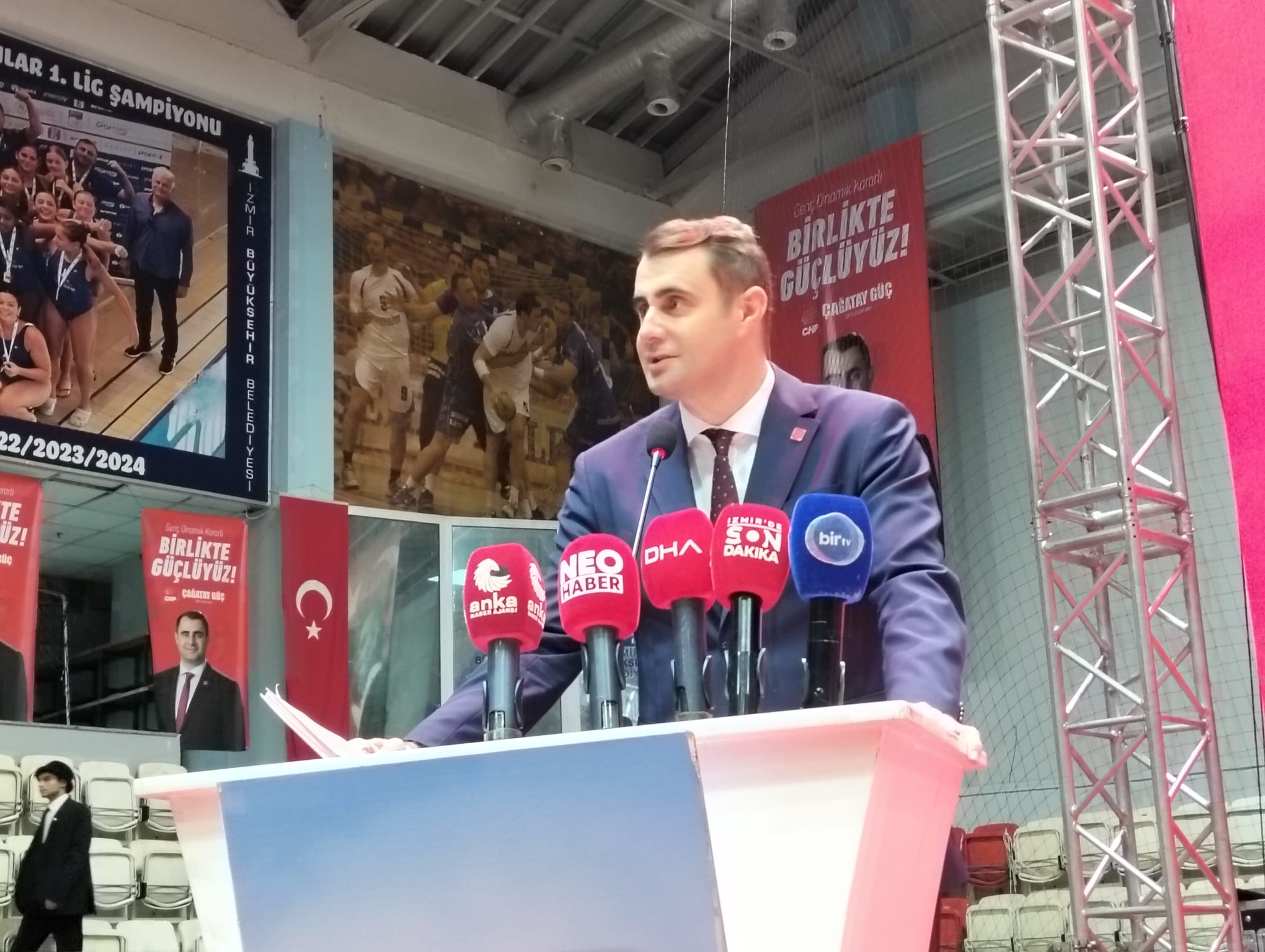 DEMOKRAT GÜNDEM-HABER MERKEZİ-AYKUT POLATLI-YAĞMUR KIZILASLAN-Cumhuriyet Halk Partisi (CHP) İzmir İl Kongresi’nde il başkan adayı Çağatay Güç, kürsüde konuşma yaptığı sırada tansiyon düşüklüğü nedeniyle fenalaşarak yere yığıldı.