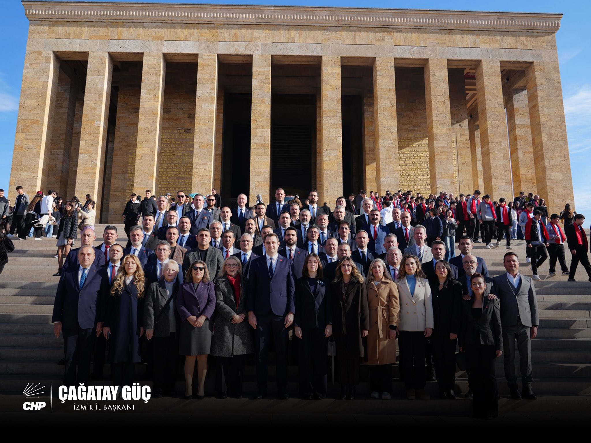 CHP İzmir İl Örgütü, İl Başkanı Çağatay Güç öncülüğünde Ankara’ya giderek Anıtkabir’i ziyaret etti. Heyette CHP İzmir İl Yönetim Kurulu üyeleri ve ilçe başkanları yer aldı.